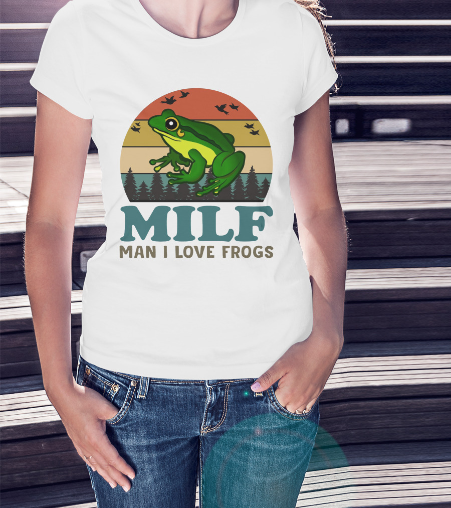 MILF Man I Love Frogs Vintage Sunset Forest Scene T-Shirt