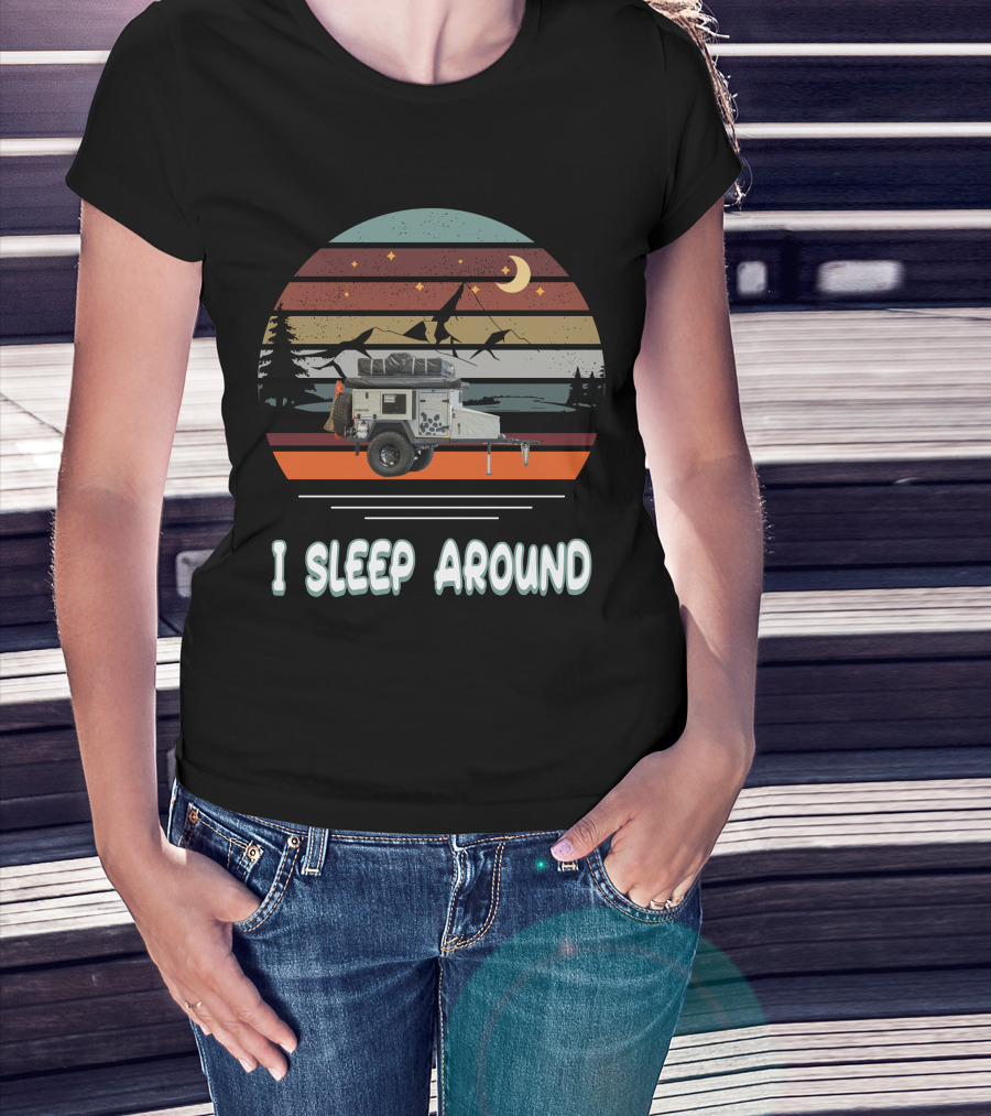 Turtleback Trailer I Sleep Around Retro Camping Scene T-Shirt