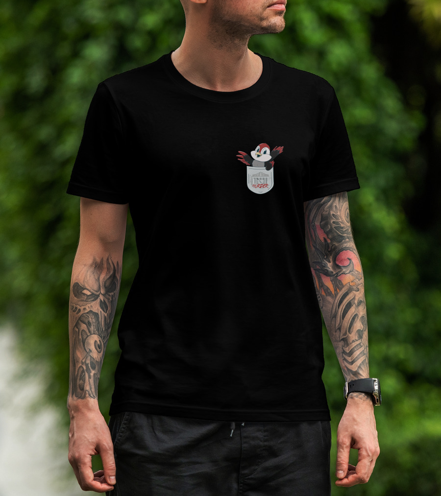 The Pocket Robin Cartoon with Murder Text and Small Town House T-shirt is designed for everyday wear and a consistent fit. Fabric is pre-shrunk ring-spun cotton with durable stitching. See the size chart below for exact measurements.