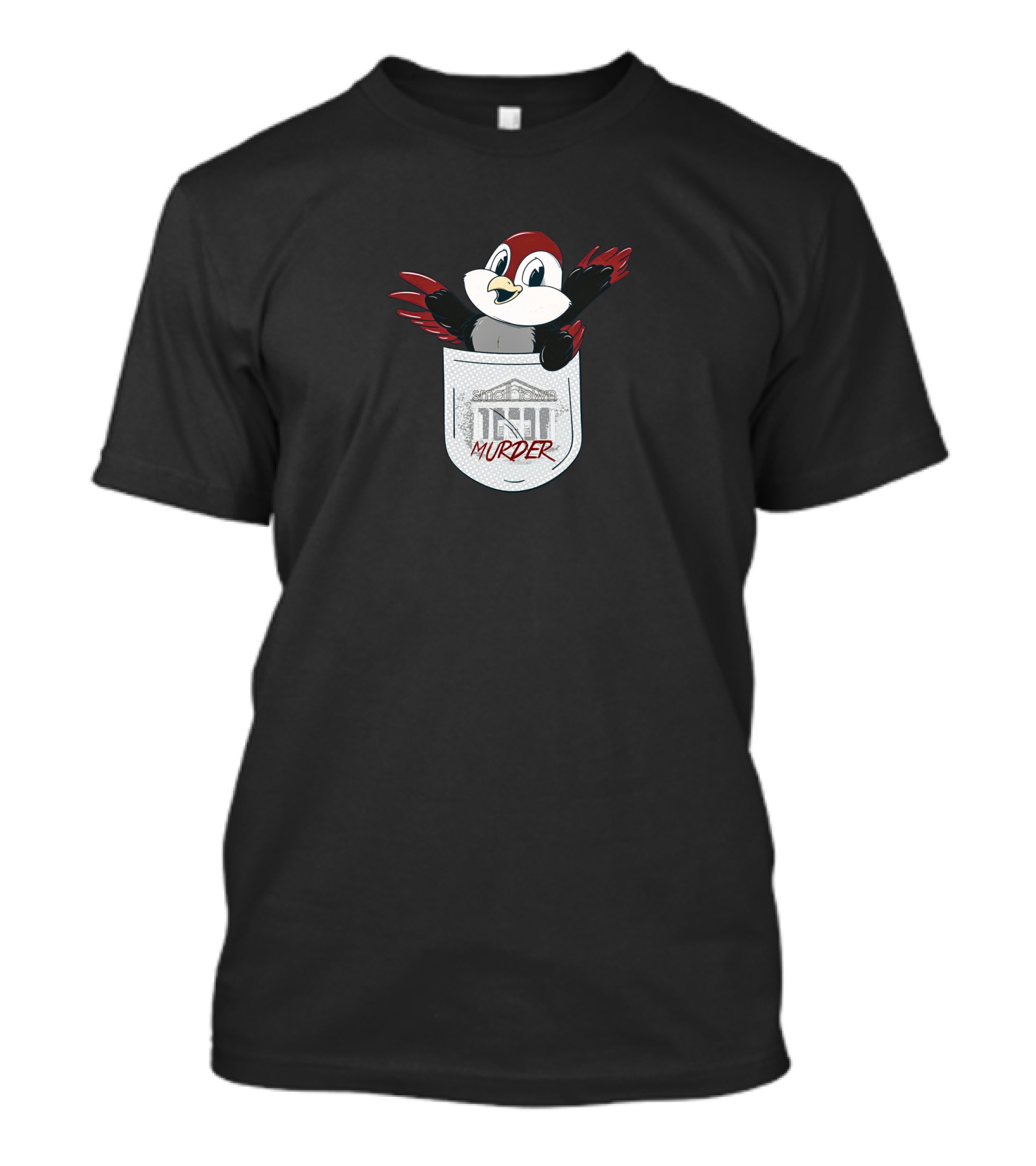 Crimeinsports Small Town Murder Pocket Robin T-Shirt