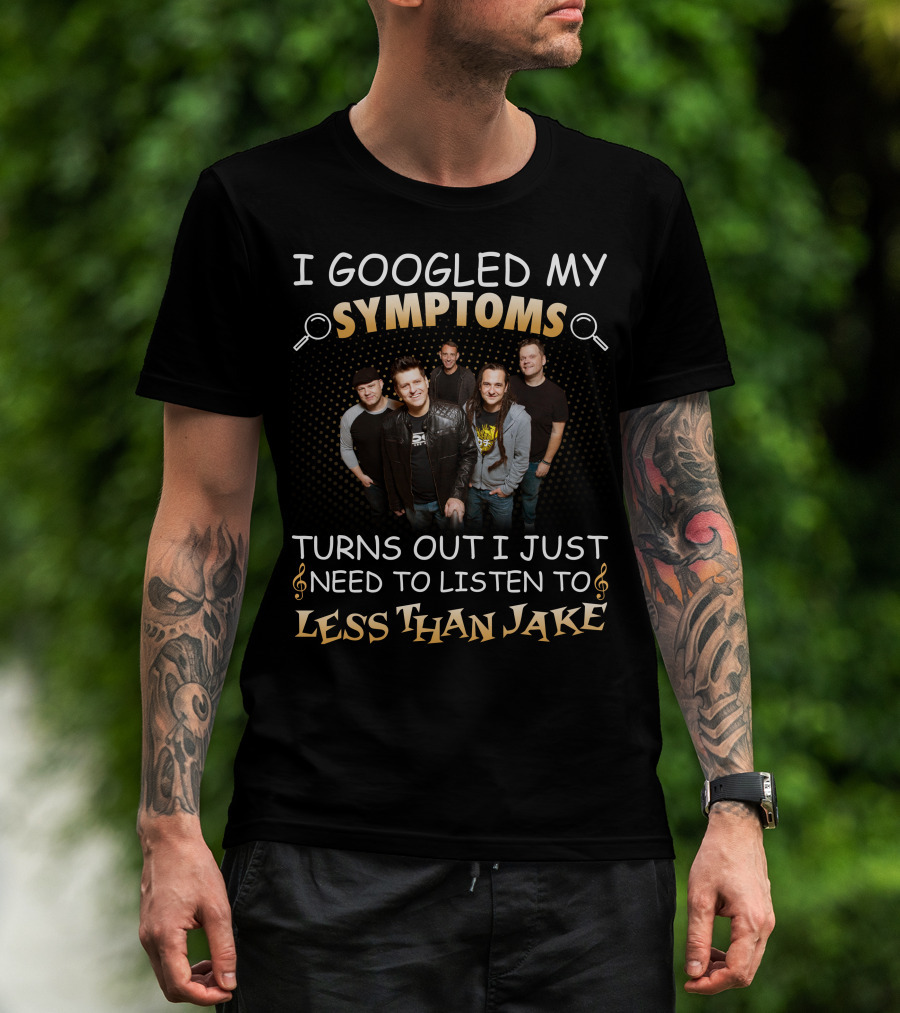 The I Googled My Symptoms Turns Out I Just Need To Listen To Less Than Jake Band Photo T-shirt is designed for everyday wear and a consistent fit. Fabric is pre-shrunk ring-spun cotton with durable stitching. See the size chart below for exact measurements.