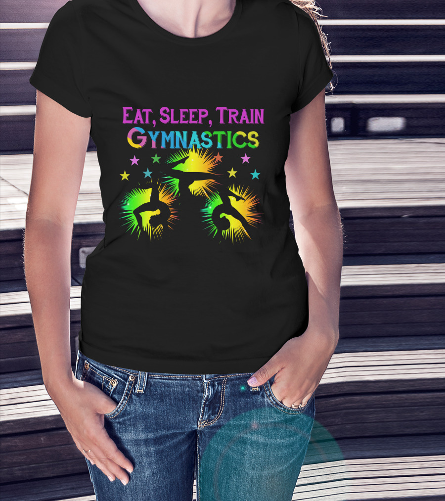 Eat Sleep Train Gymnastics Colorful Silhouette Stars Explosion T-Shirt