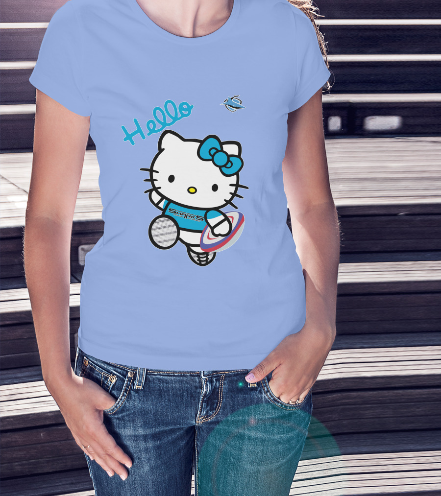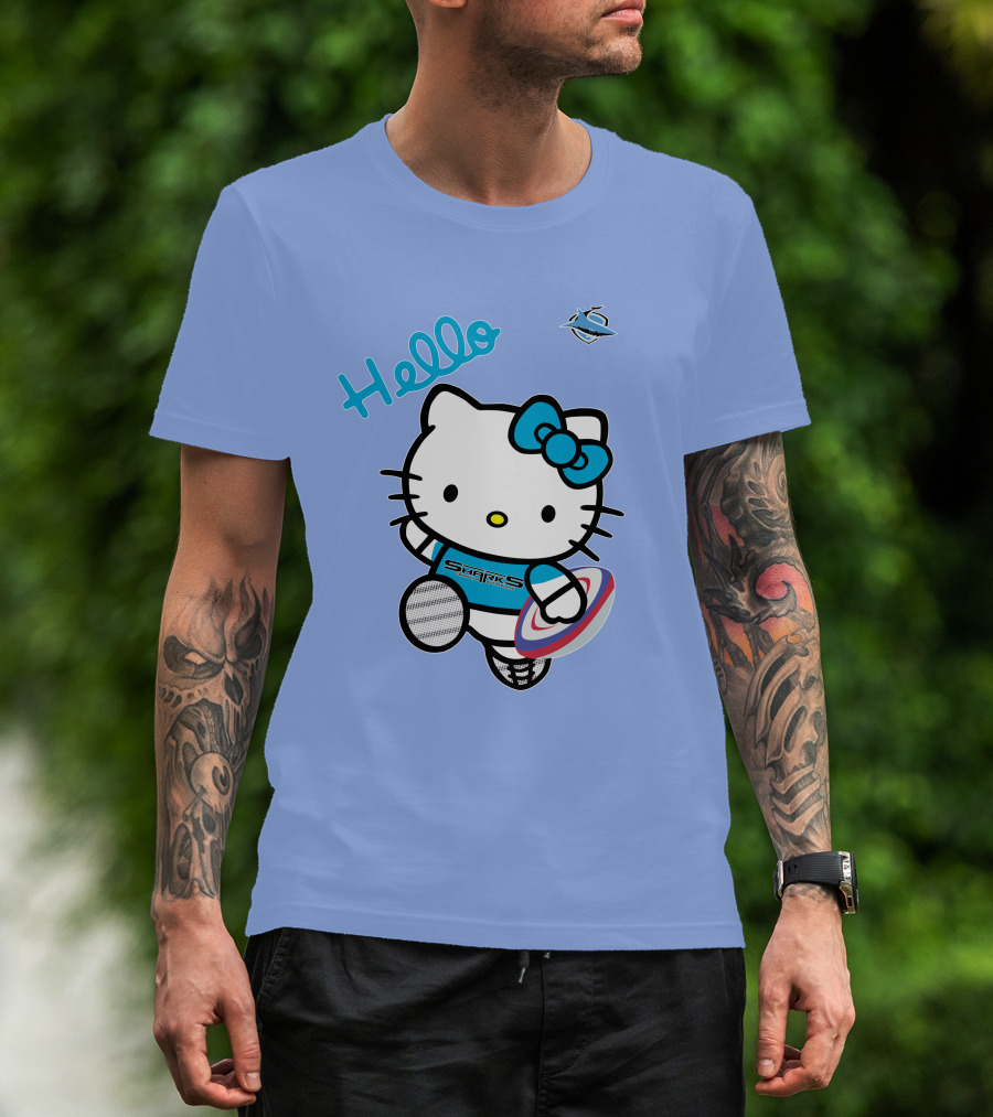 NRL1005 Cronulla Sutherland Sharks Hello Kitty Rugby Player T-Shirt