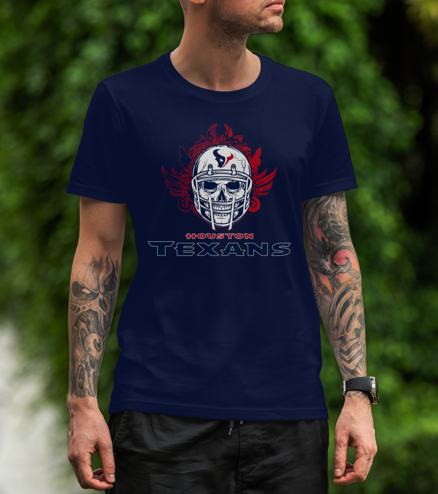 Houston Texans Skull Helmet Wings T-Shirt