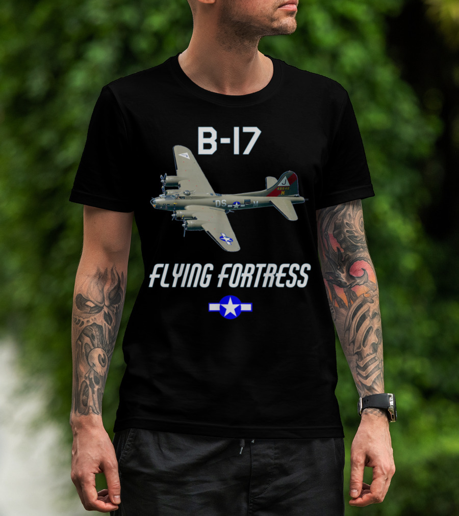 B17 Flying Fortress With Military Airplane And Star Insignia T-Shirt