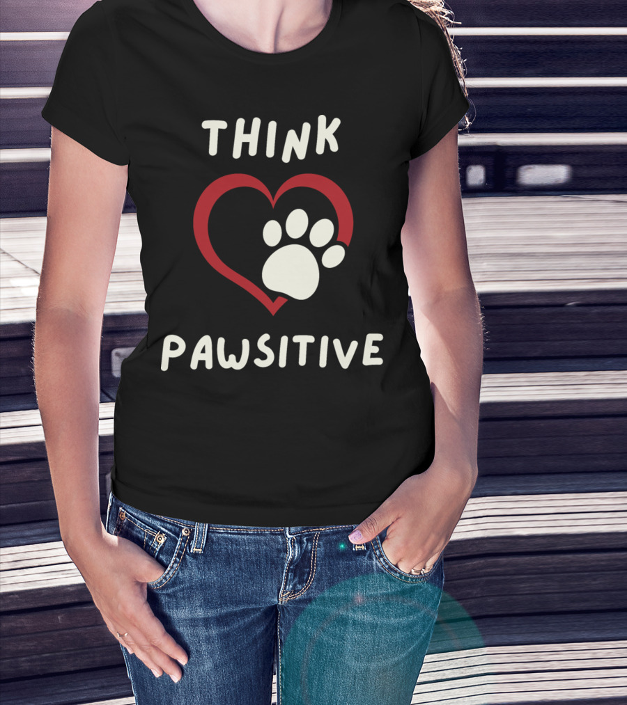Think Pawsitive Dog Paw Heart T-Shirt