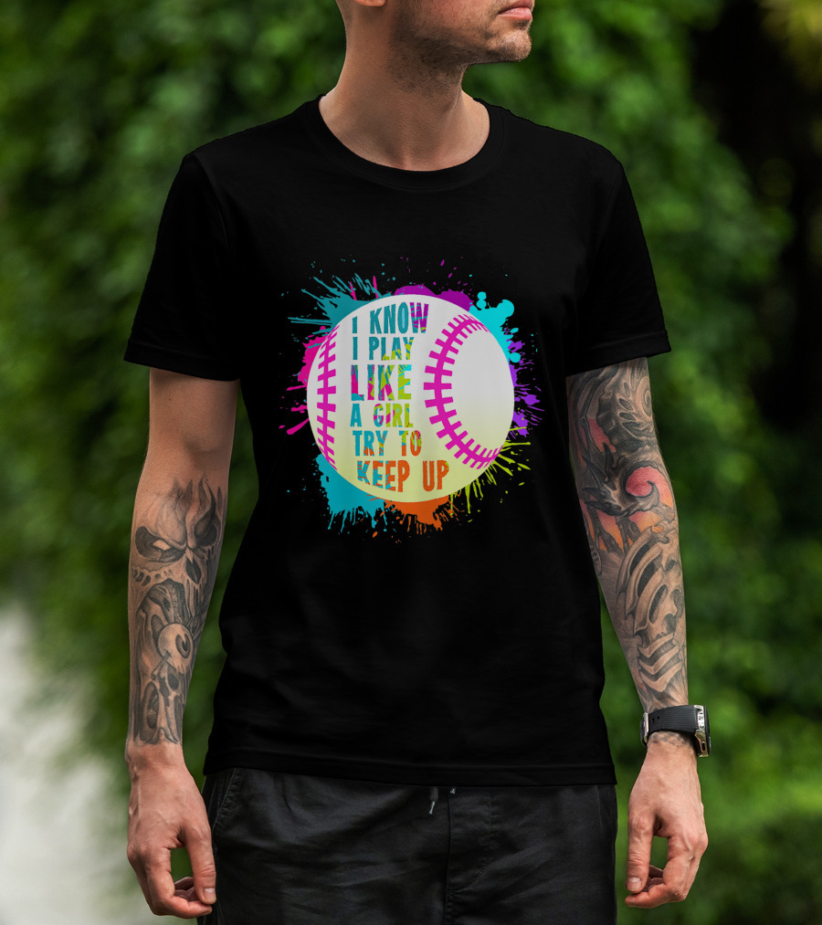 I Know I Play Like A Girl Try To Keep Up Softball Baseball T-Shirt