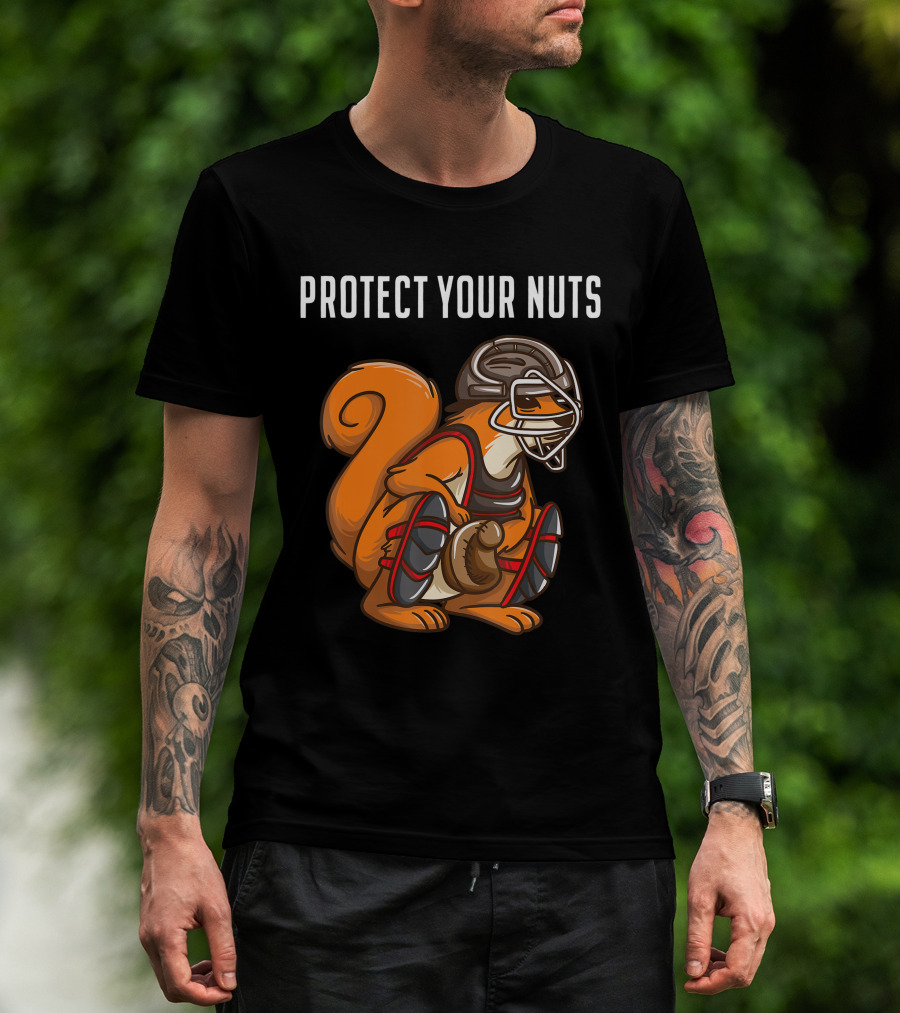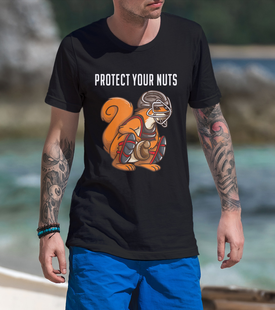 Protect Your Nuts Funny Squirrel Lover Baseball Catcher Animal T-Shirt