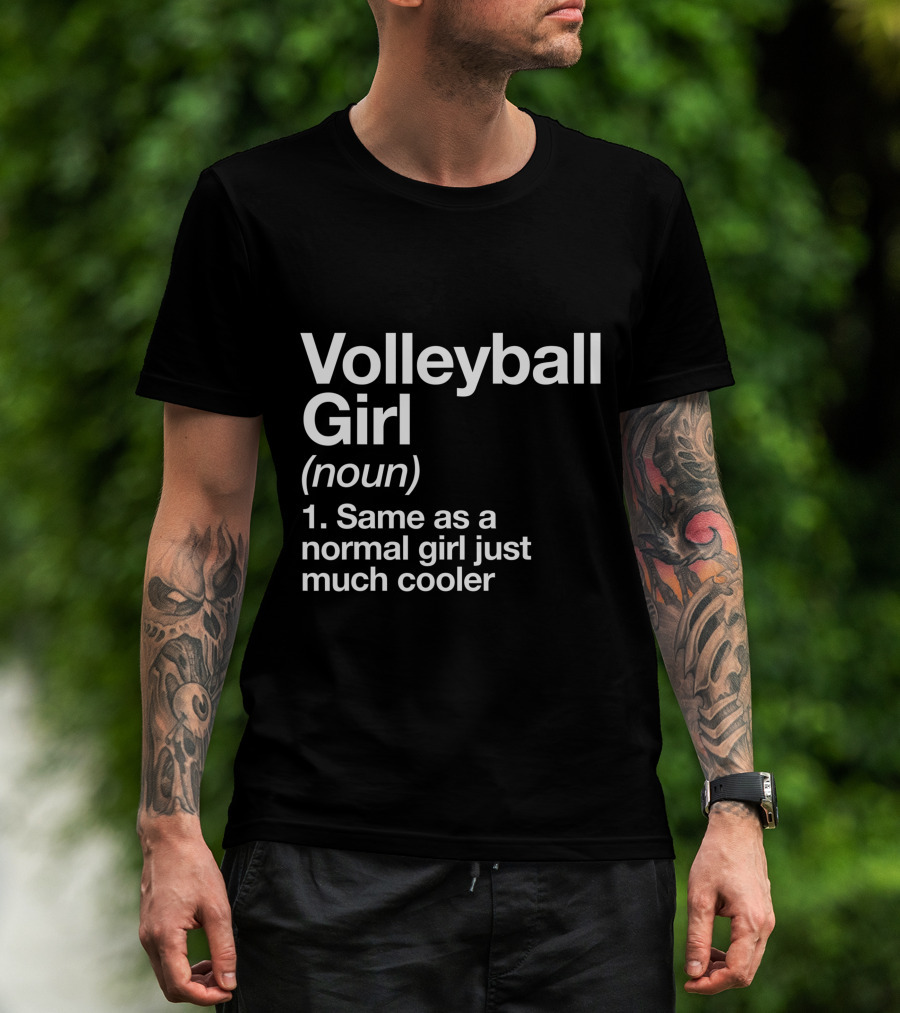 The Volleyball Girl Definition Same as Normal Girl Much Cooler T-shirt is designed for everyday wear and a consistent fit. Fabric is pre-shrunk ring-spun cotton with durable stitching. See the size chart below for exact measurements.