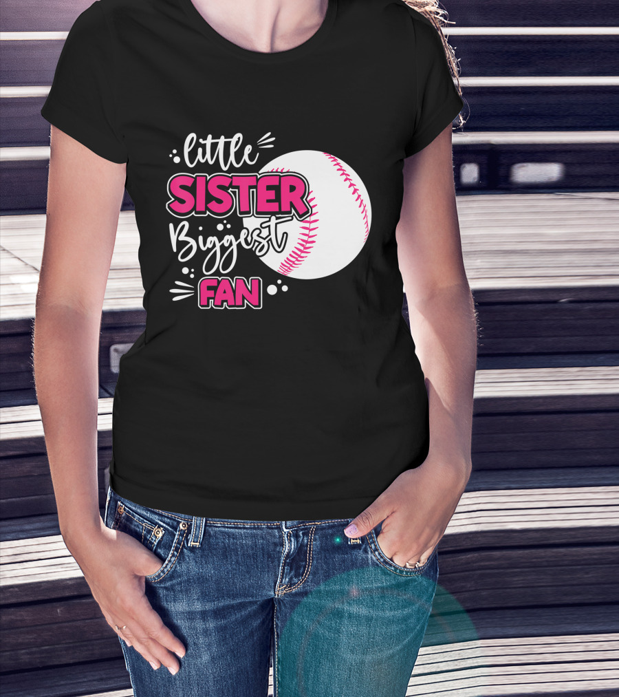 Little Sister Biggest Fan Baseball Season For Girl Siblings T-Shirt