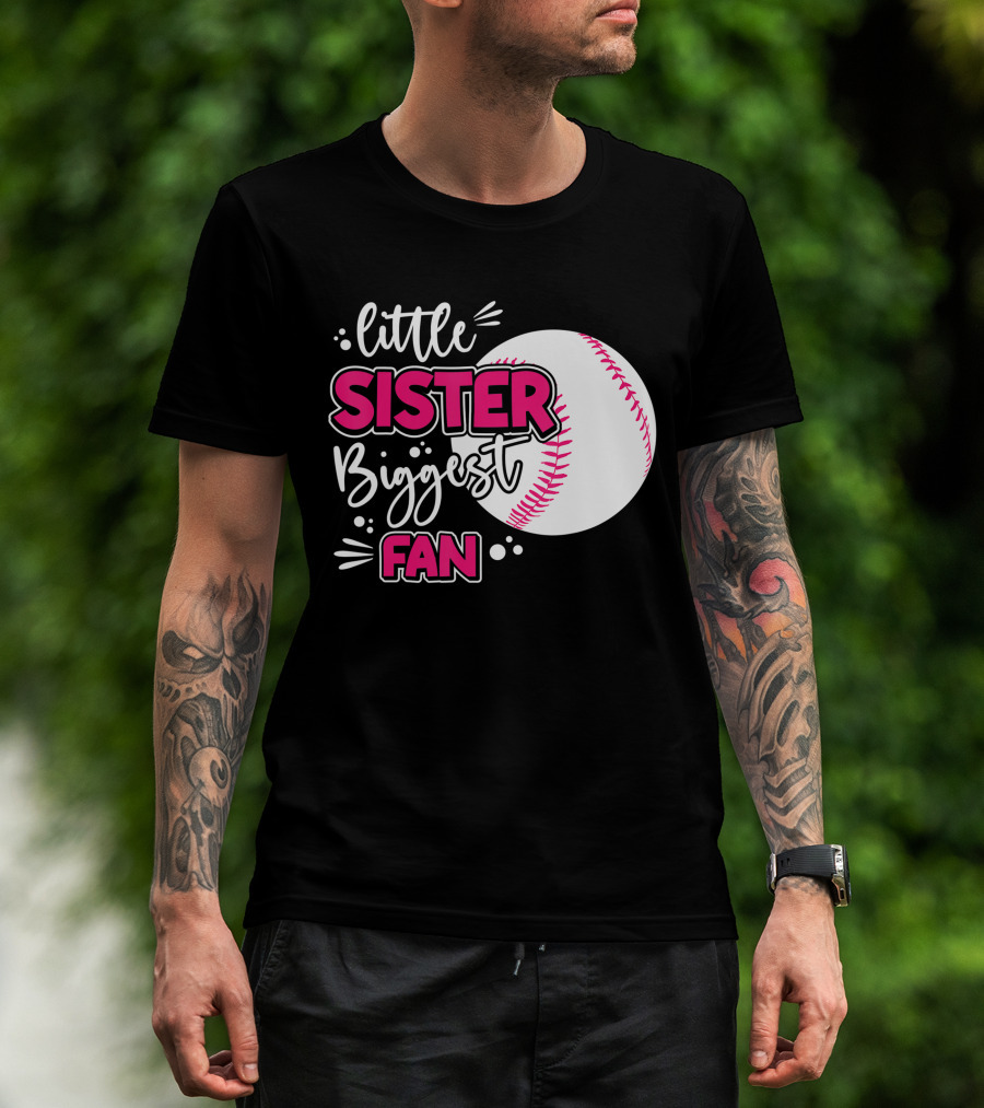 The Little Sister Biggest Fan Baseball Season For Girl Siblings T-shirt is designed for everyday wear and a consistent fit. Fabric is pre-shrunk ring-spun cotton with durable stitching. See the size chart below for exact measurements.