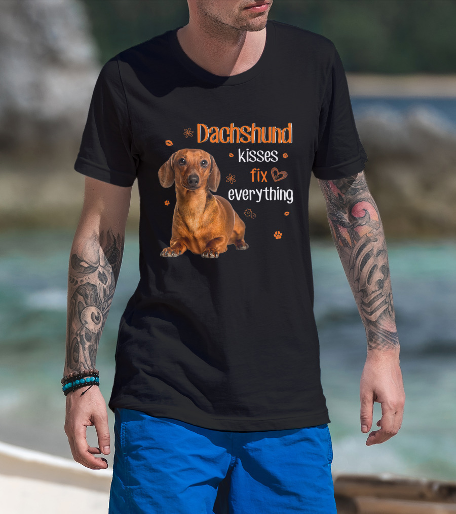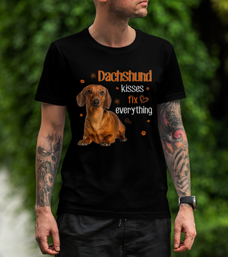 Dachshund Kisses Fix Everything Dachshund Lover Orange Paw Prints T-Shirt