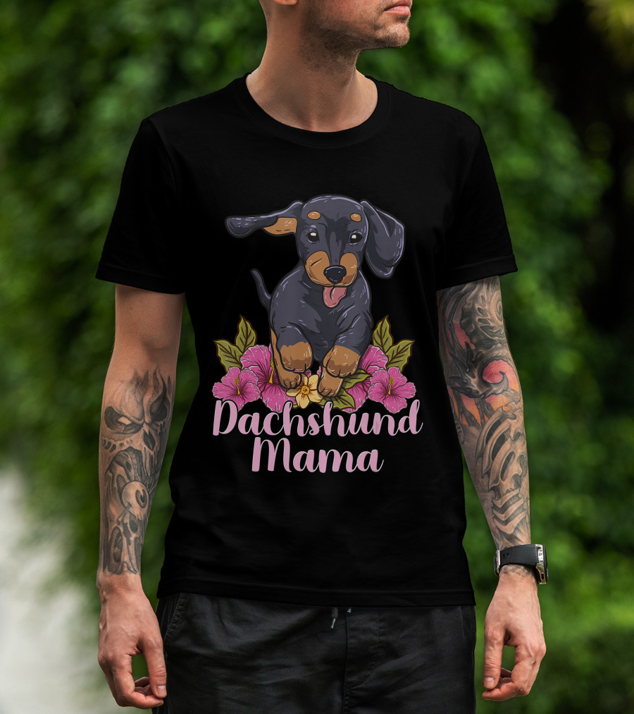 The Dachshund Mama Mom Wiener Doxie Dachshund Lover Owner Floral T-shirt is designed for everyday wear and a consistent fit. Fabric is pre-shrunk ring-spun cotton with durable stitching. See the size chart below for exact measurements.