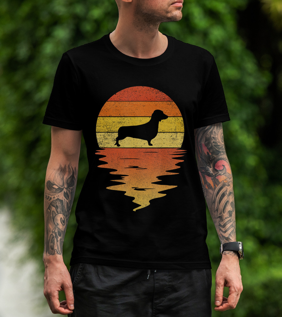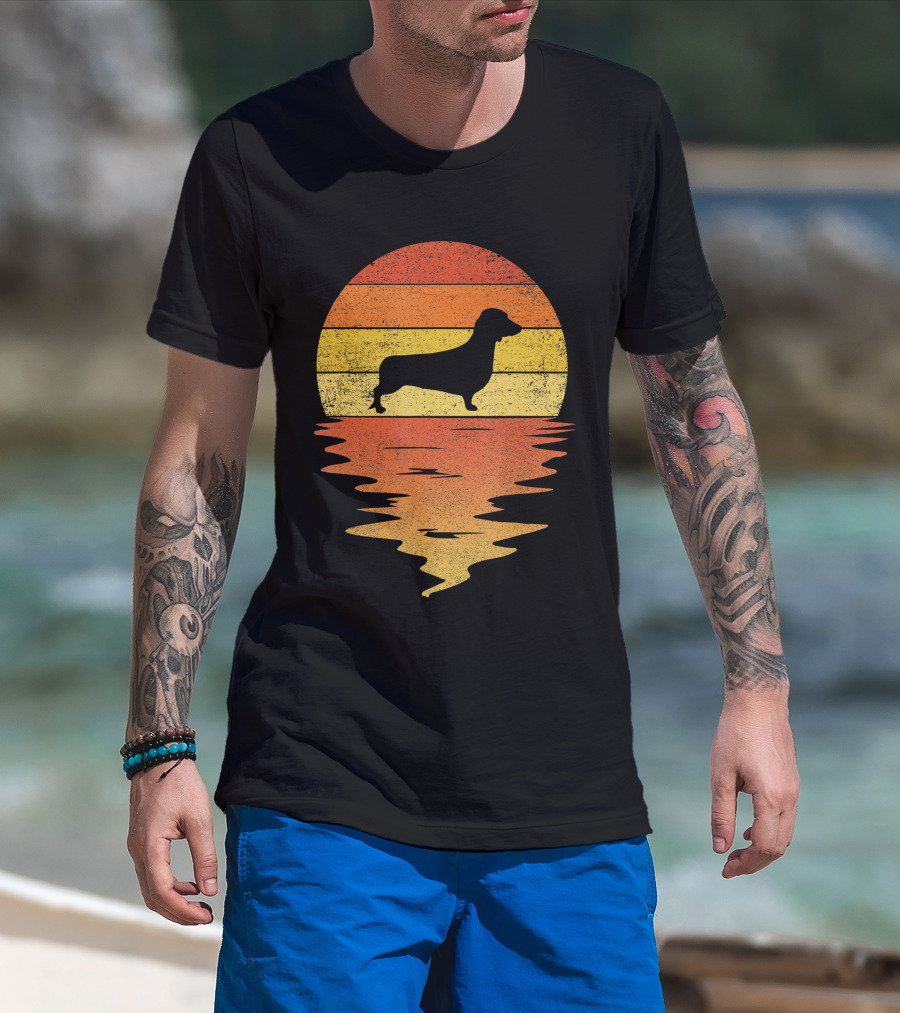Dachshund Retro 70s Vintage Sunset T-Shirt