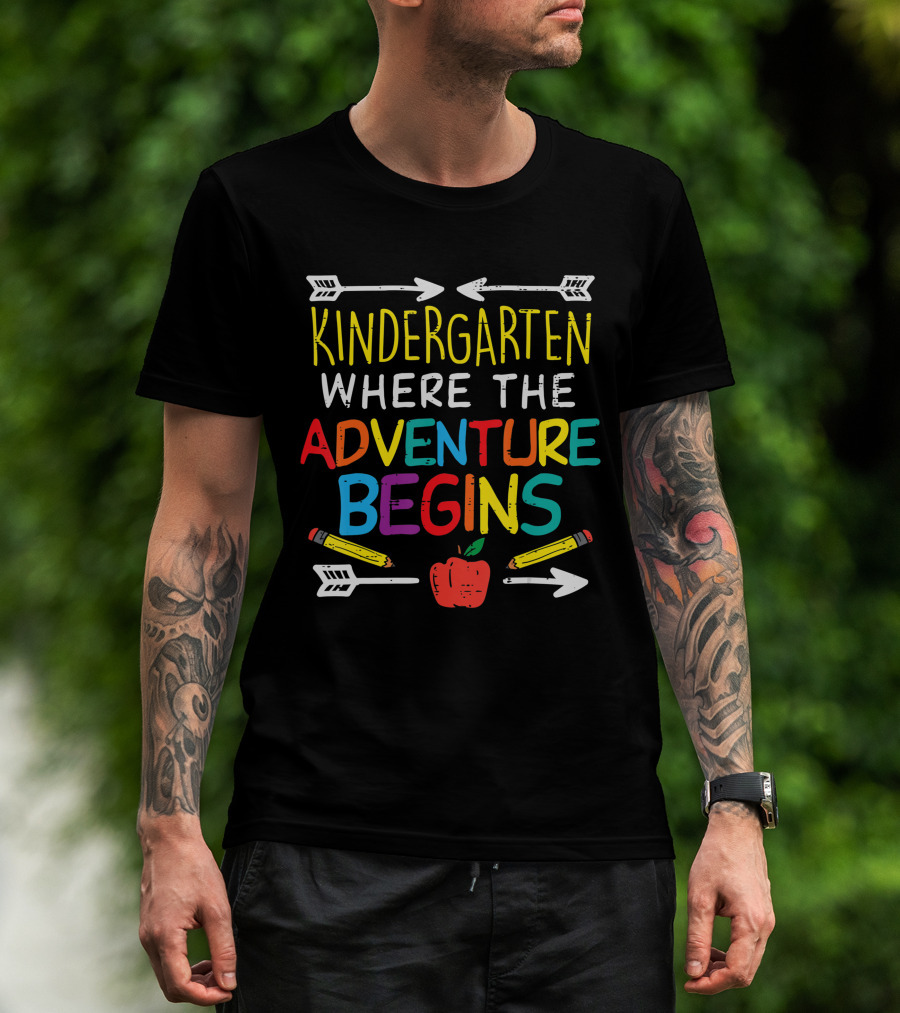 Kindergarten Where The Adventure Begins With Pencils And Apple T-Shirt