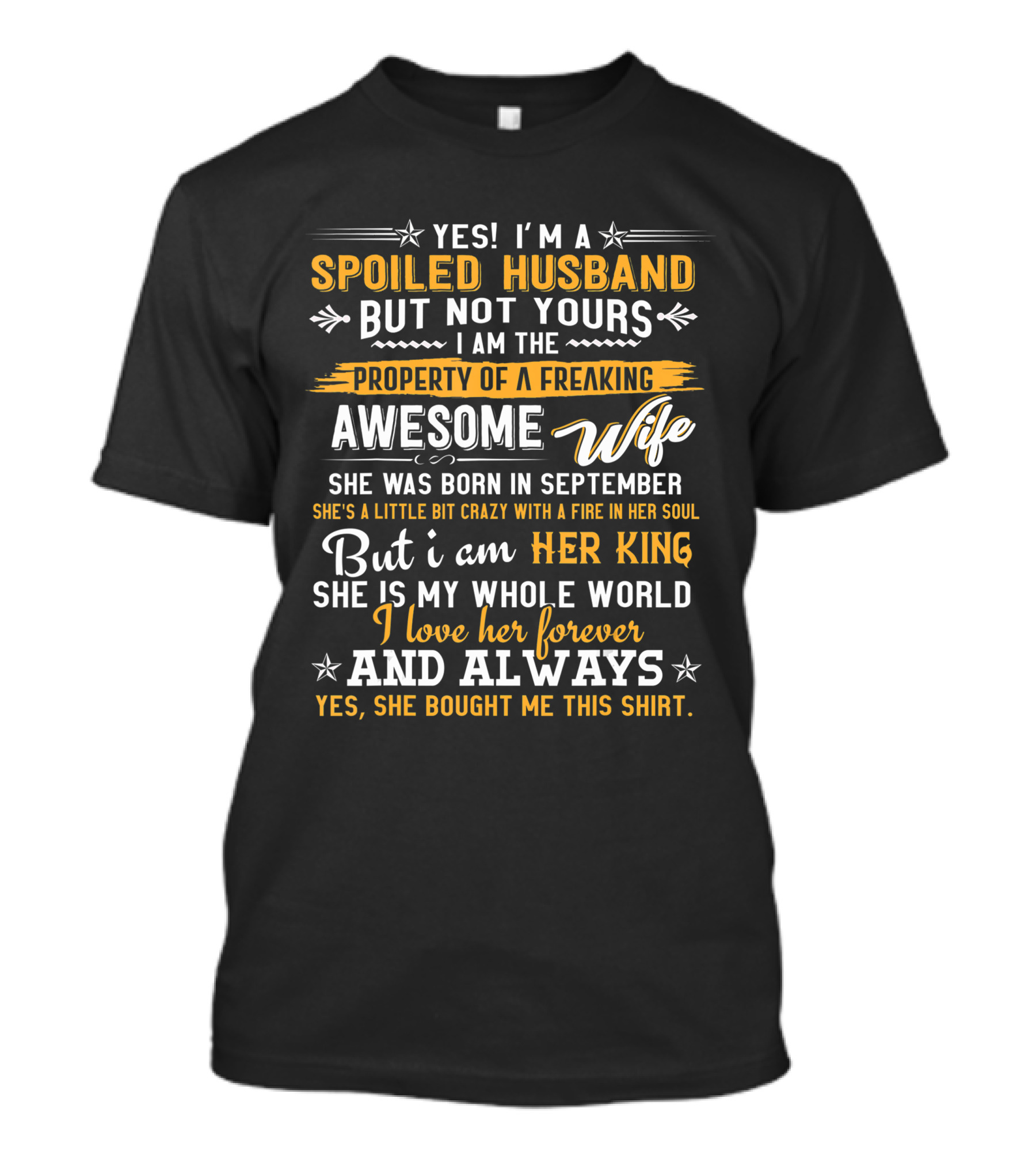 Yes I’m A Spoiled Husband Property Of A Freaking Awesome Wife She Was Born In September T-Shirt