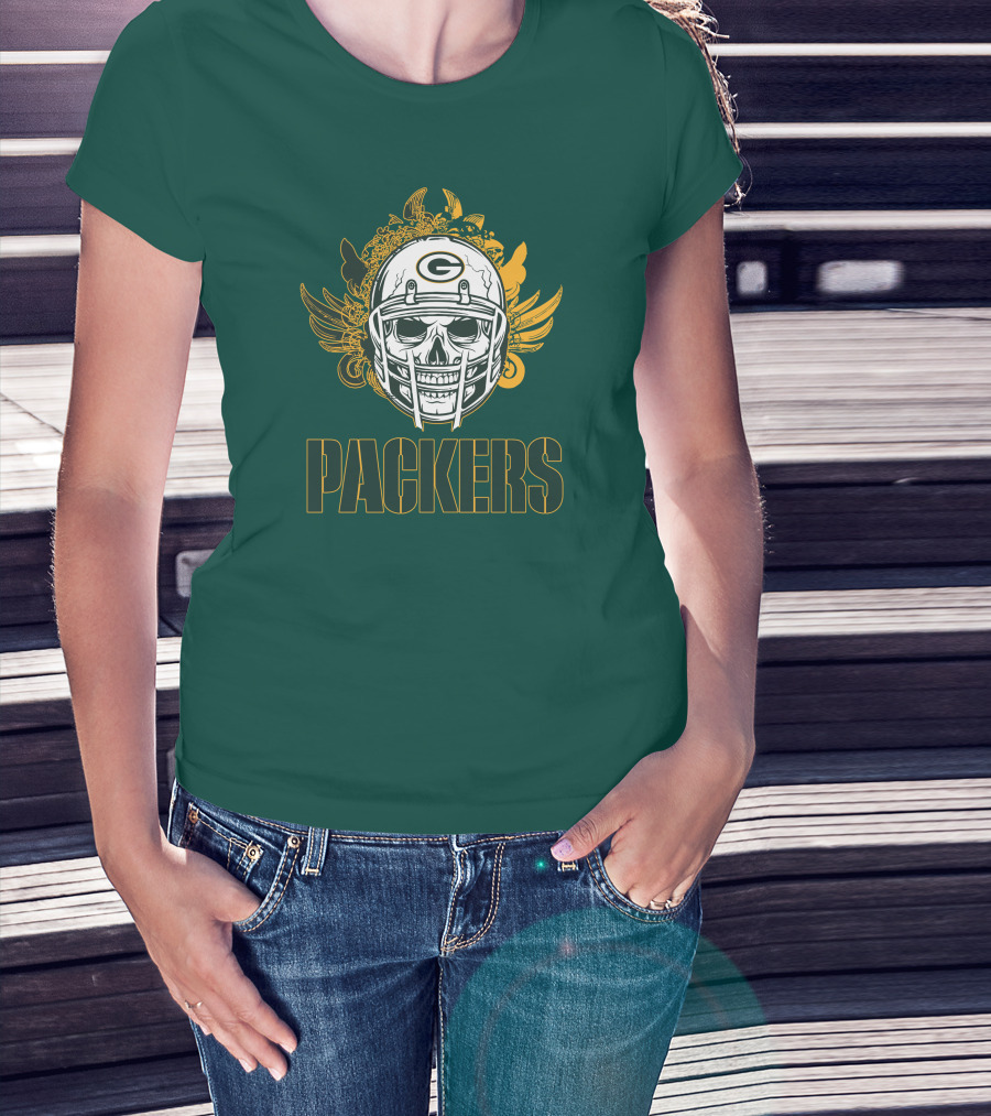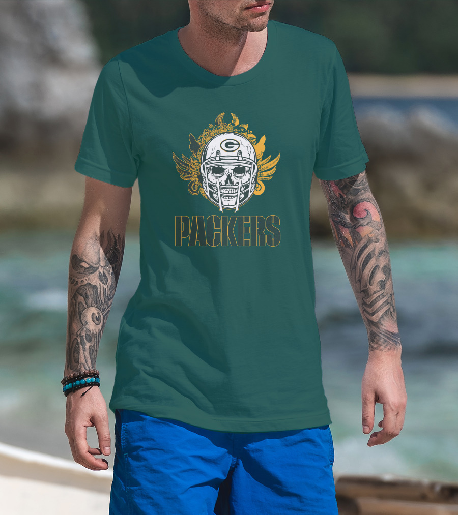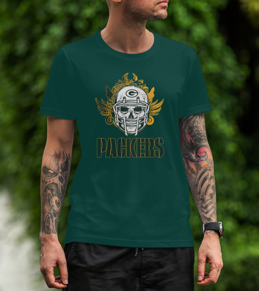 Packers Skull Helmet With Green Bay Logo Elements T-Shirt