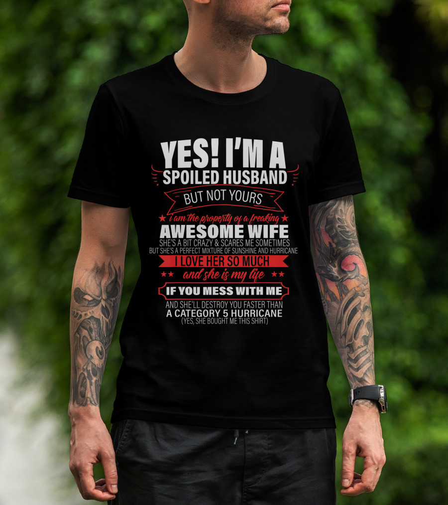 Yes I'm A Spoiled Husband But Not Yours Awesome Wife Property Crazy Mixture Love Life Category 5 Hurricane T-Shirt