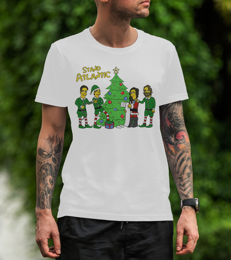 The STAND ATLANTIC Christmas Tree and Cartoon Characters T-shirt is designed for everyday wear and a consistent fit. Fabric is pre-shrunk ring-spun cotton with durable stitching. See the size chart below for exact measurements.