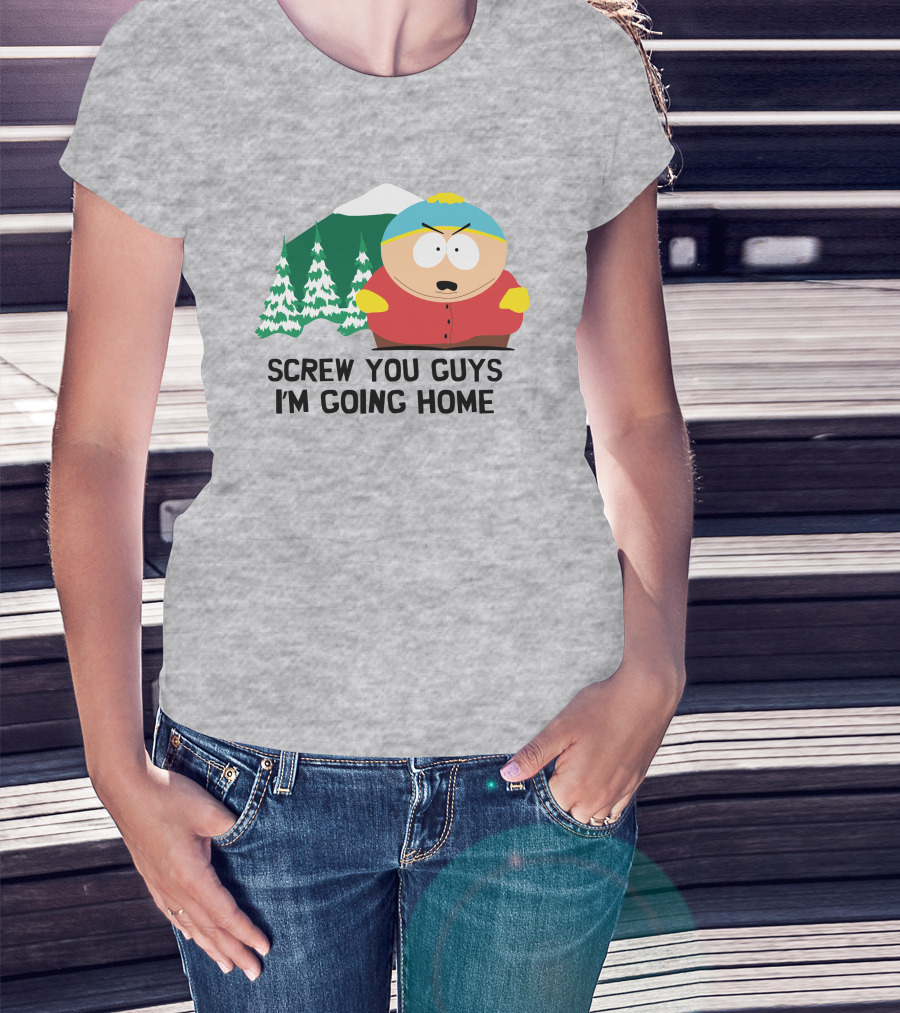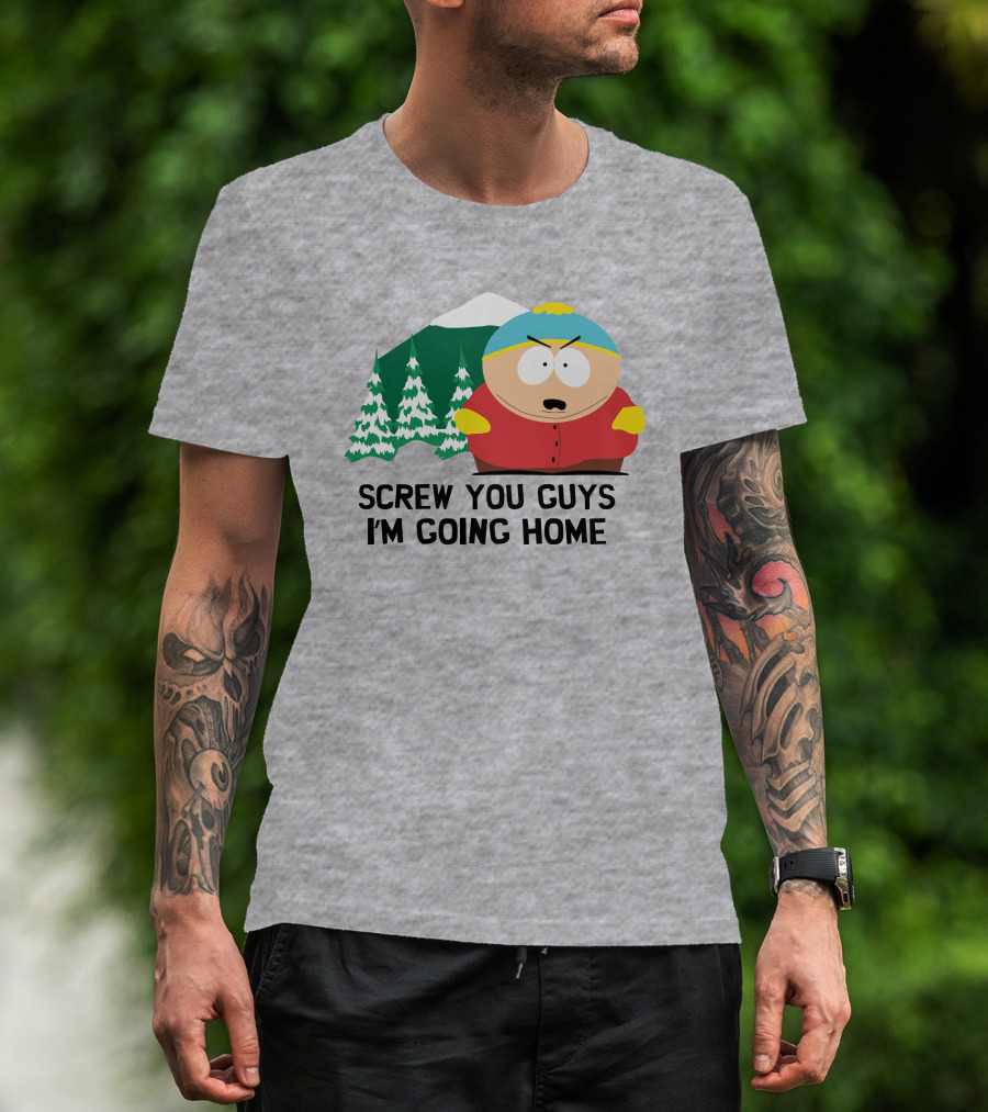 The South Park Screw You Guys I'm Going Home Cartman Mountains Scene T-shirt is designed for everyday wear and a consistent fit. Fabric is pre-shrunk ring-spun cotton with durable stitching. See the size chart below for exact measurements.