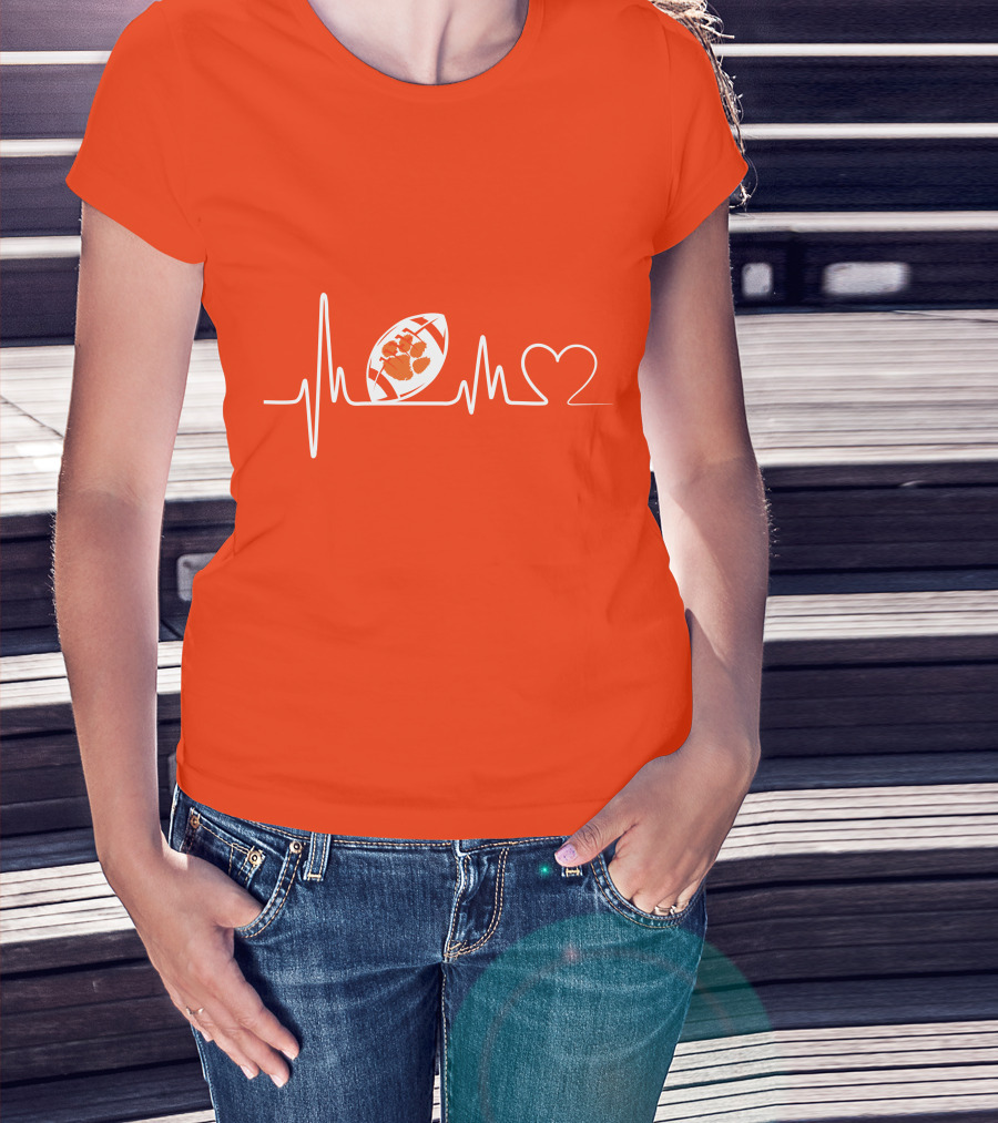 Clemson Tigers Heartbeat Football Paw Prints T-Shirt