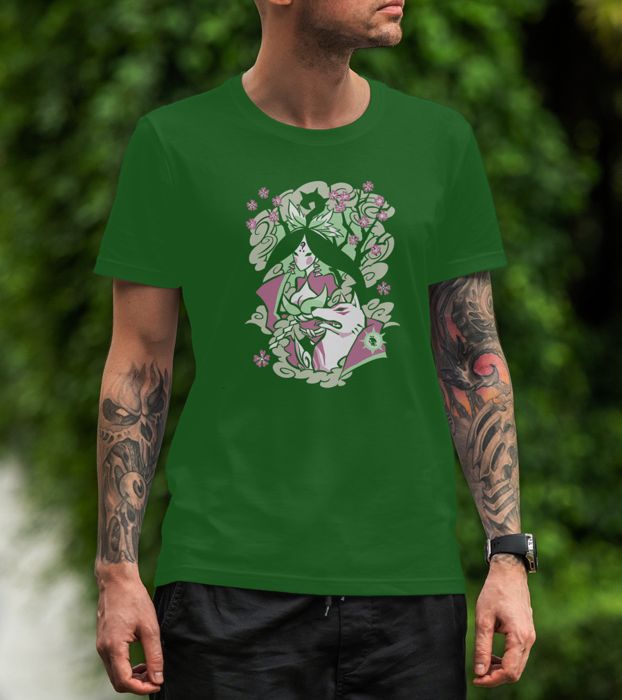 The Okami Merch Amaterasu and Cherry Blossoms T-shirt is designed for everyday wear and a consistent fit. Fabric is pre-shrunk ring-spun cotton with durable stitching. See the size chart below for exact measurements.