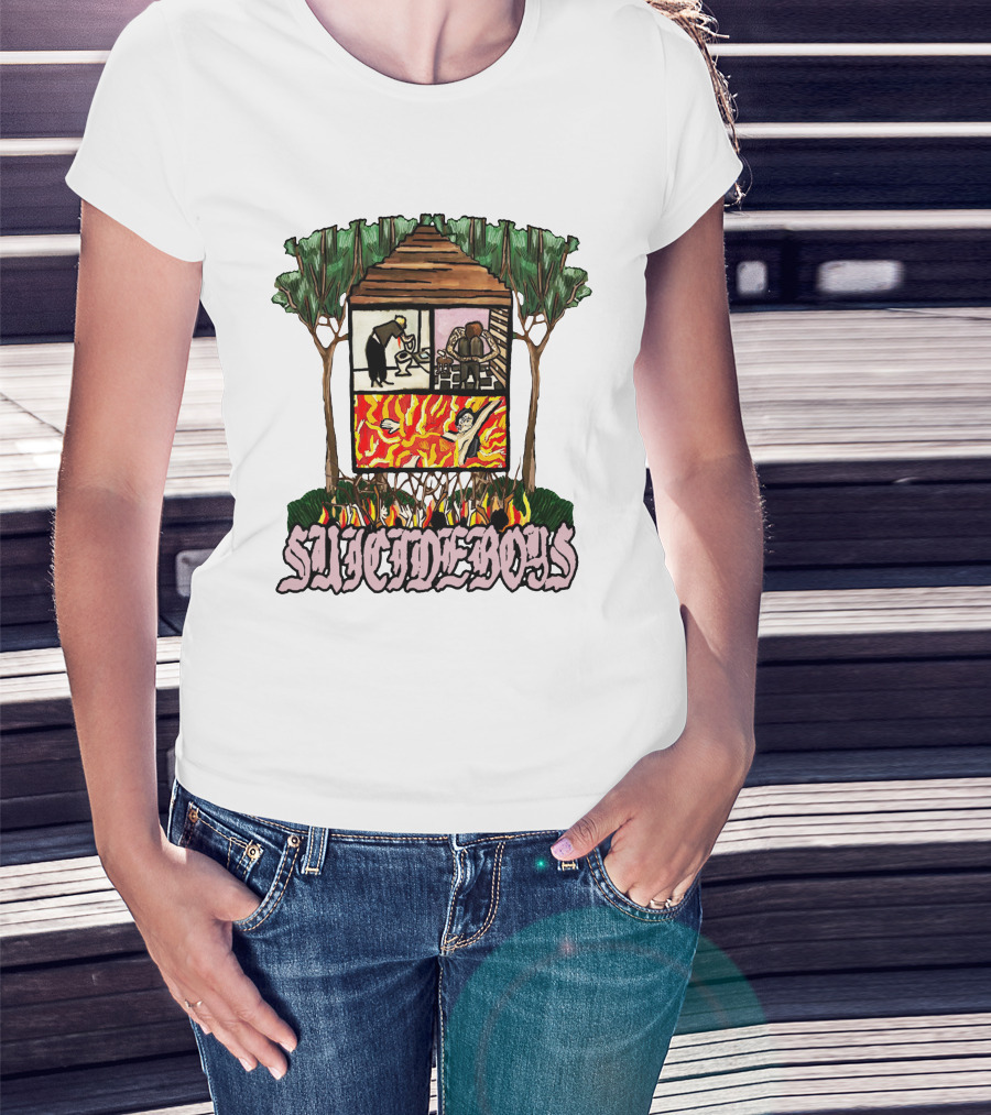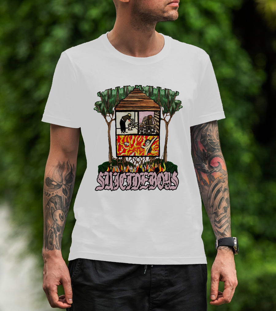 The Suicideboys Fire and House Scene T-shirt is designed for everyday wear and a consistent fit. Fabric is pre-shrunk ring-spun cotton with durable stitching. See the size chart below for exact measurements.