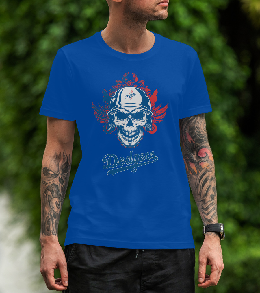Dodgers Skull With Wings And Helmet T-Shirt