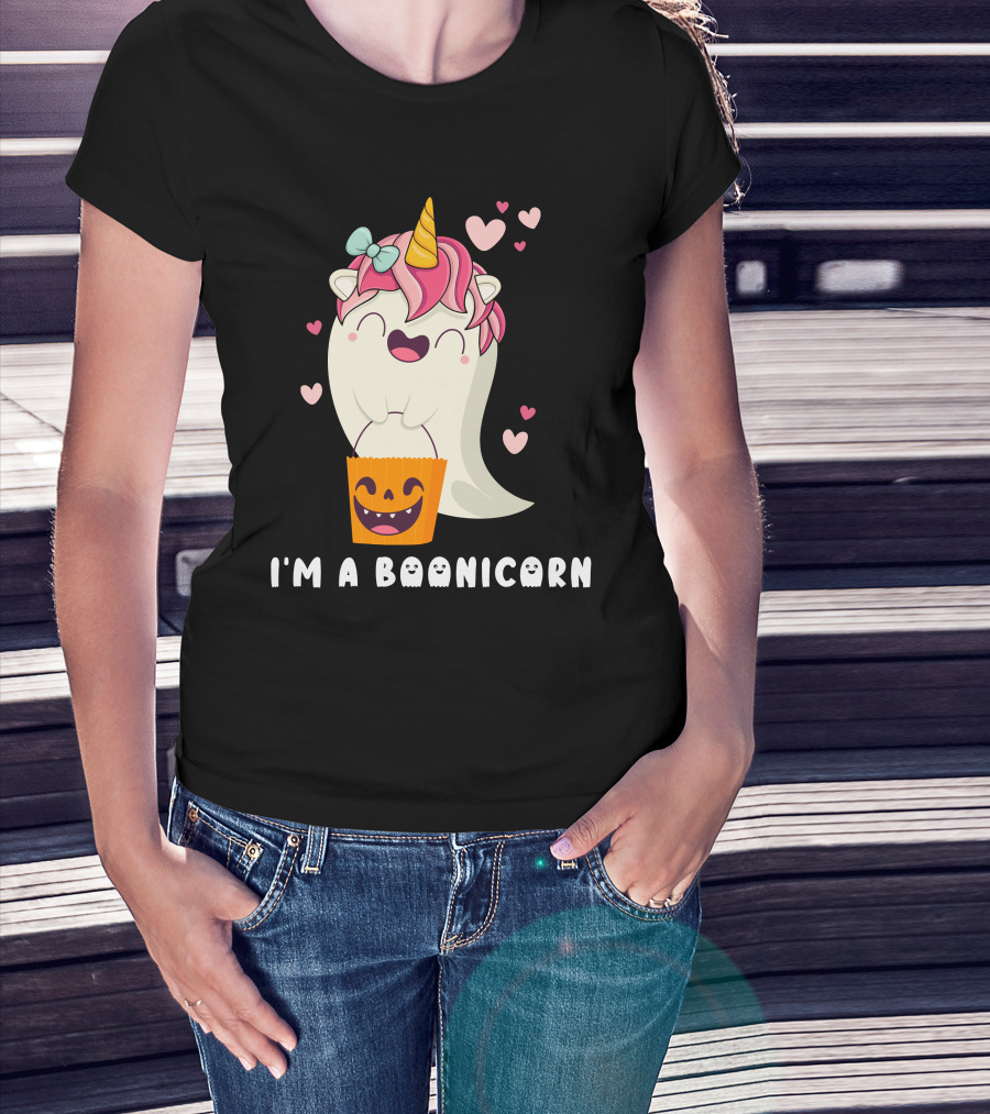 I'm A Boonicorn Cute Boonicorn Ghost Unicorn Halloween Hearts T-Shirt