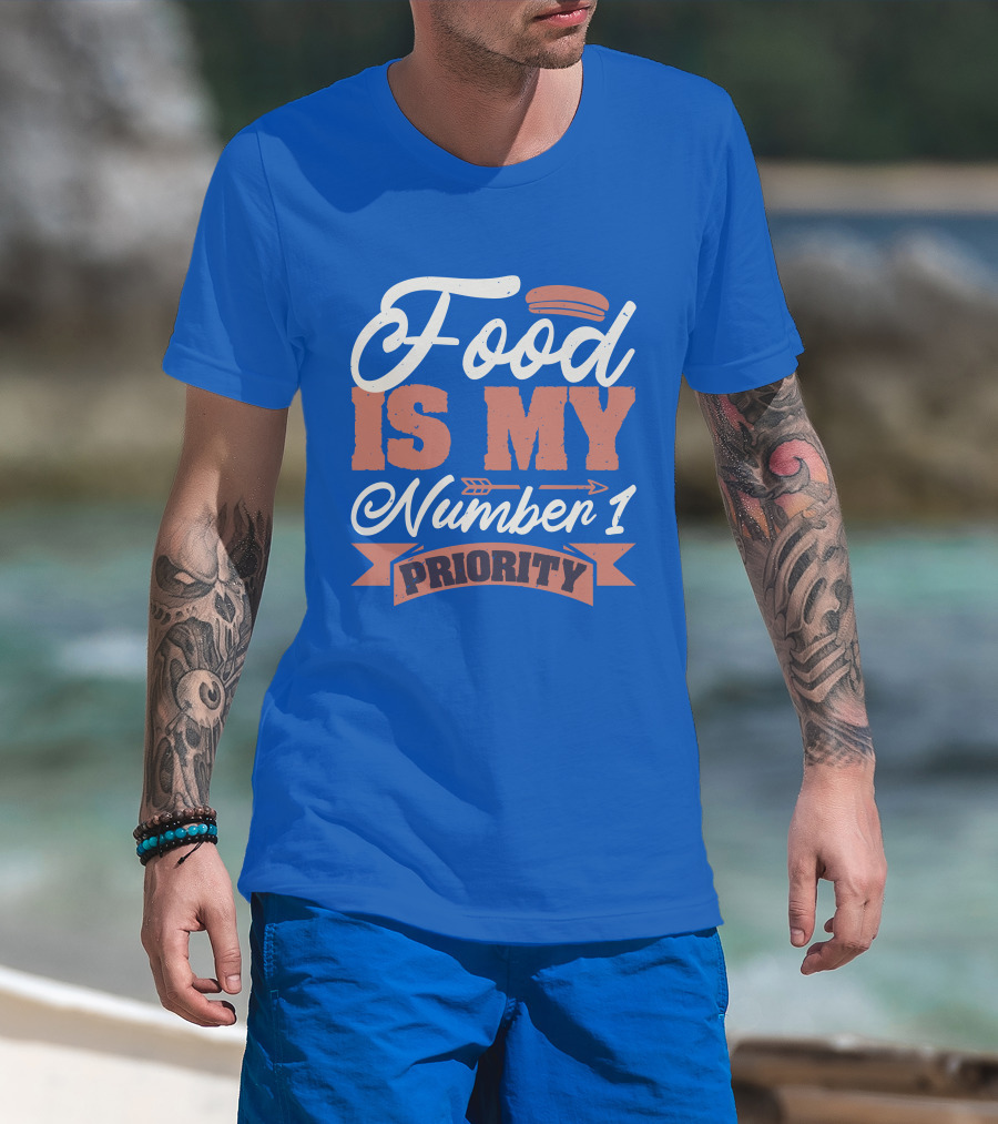 Food Is My Number 1 Priority Hotdog Arrow Banner T-Shirt