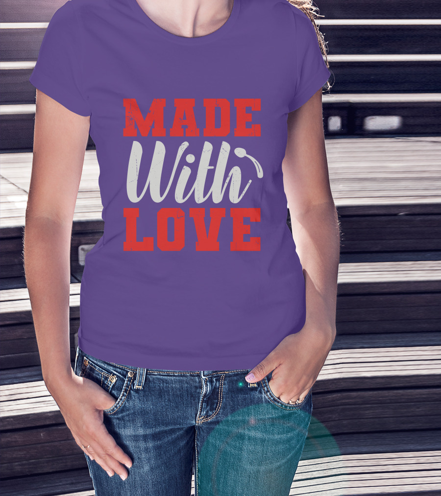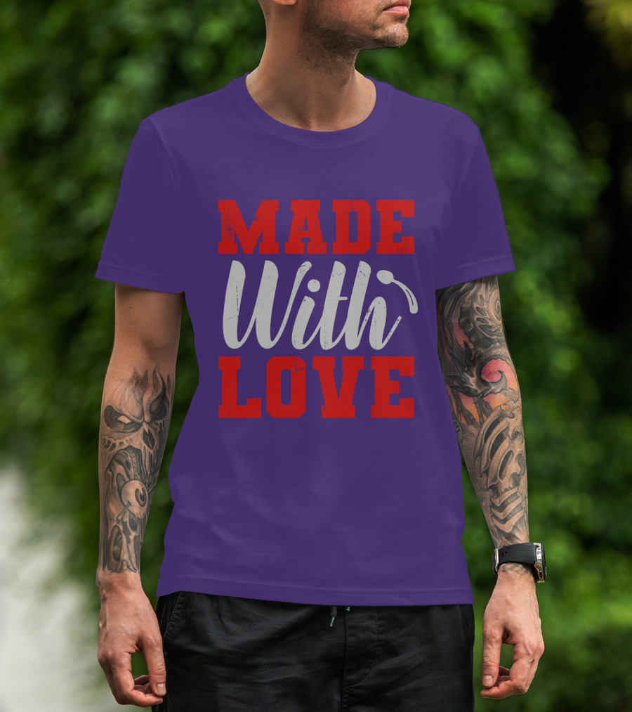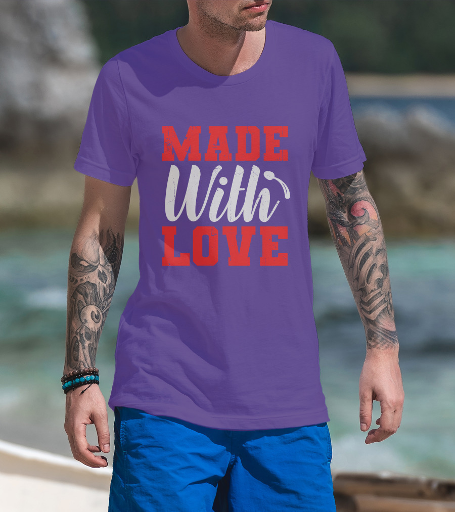 The MADE With LOVE T-shirt is designed for everyday wear and a consistent fit. Fabric is pre-shrunk ring-spun cotton with durable stitching. See the size chart below for exact measurements.