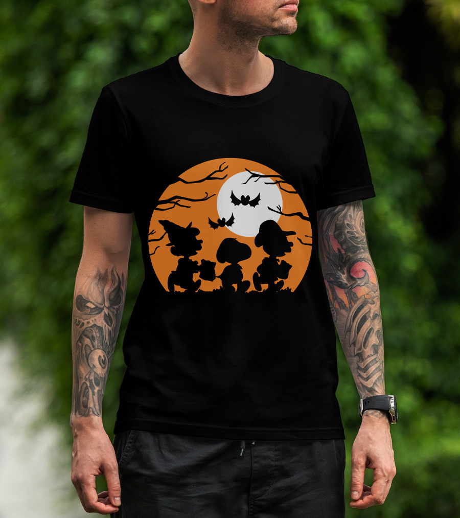 Peanuts Halloween Trick Or Treat Moonlit Bats T-Shirt