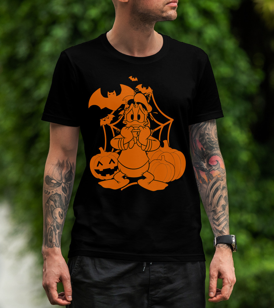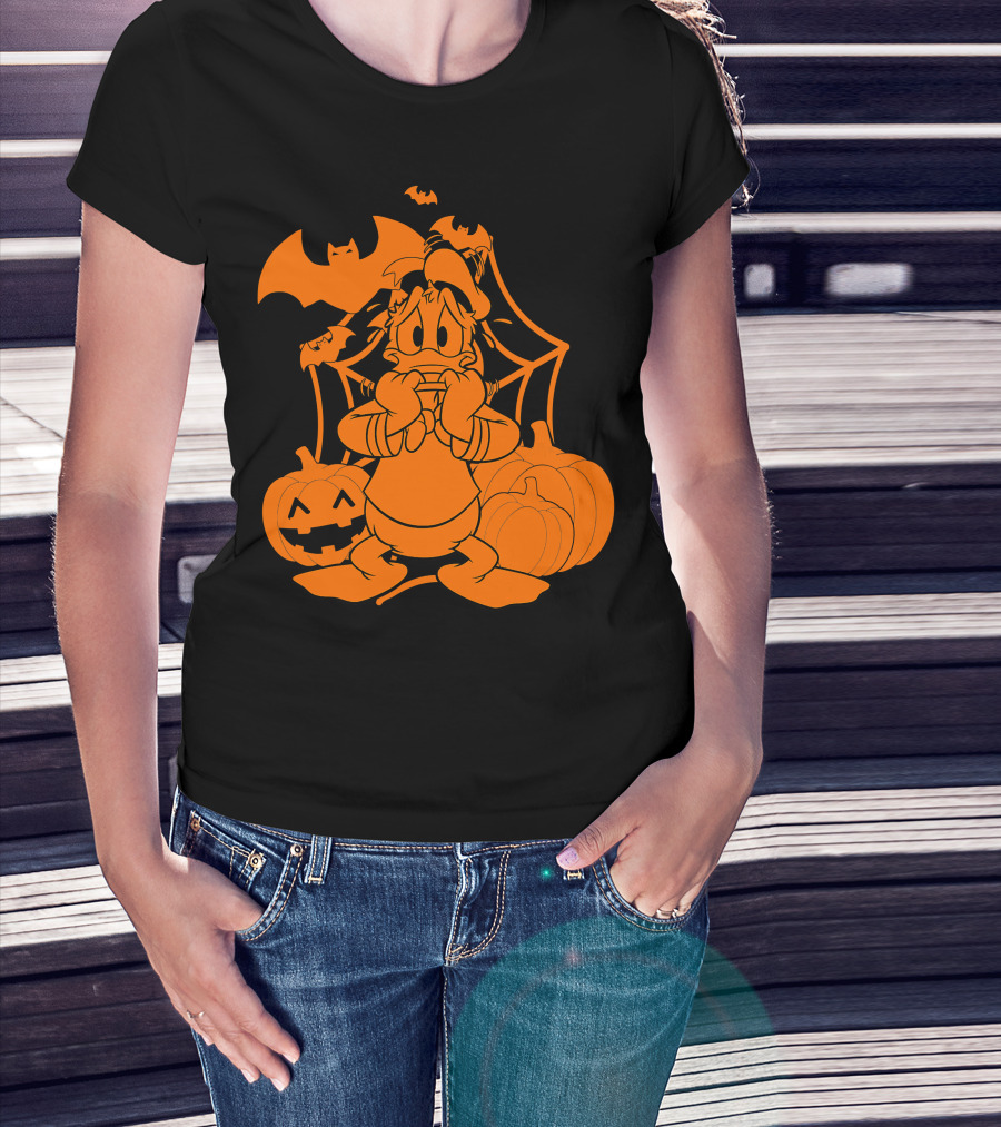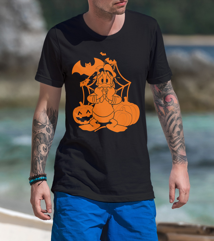 Donald Duck Halloween Pumpkins With Bat And Spider Webs T-Shirt