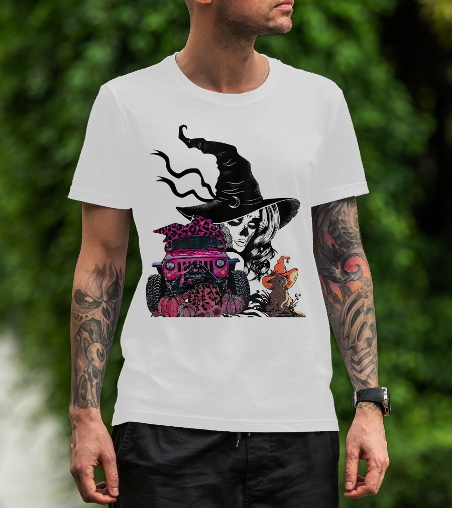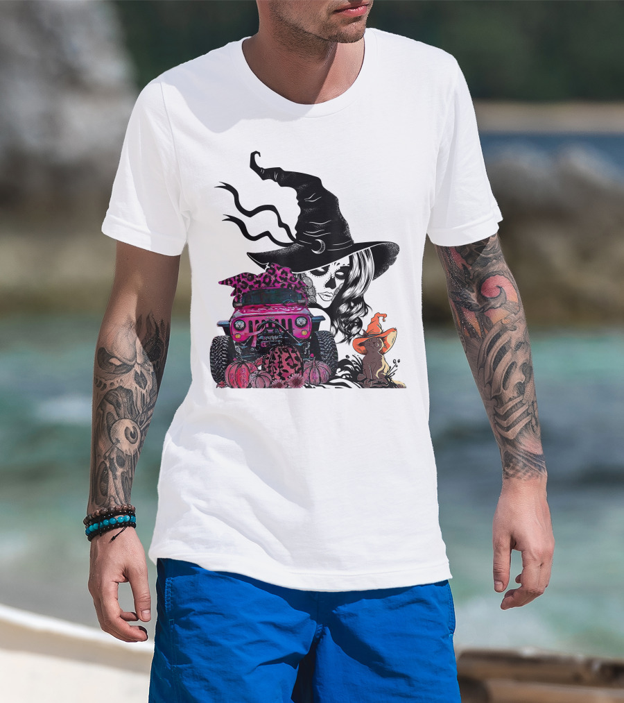 My Broom Broke Now I Drive A Black Jeep With Witch Hat And Halloween Cat T-Shirt