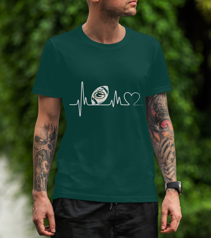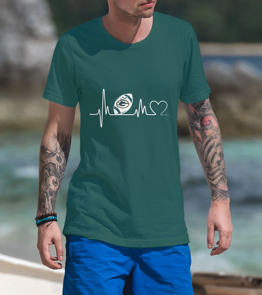 Green Bay Packers Heartbeat ECG Line Football Love T-Shirt