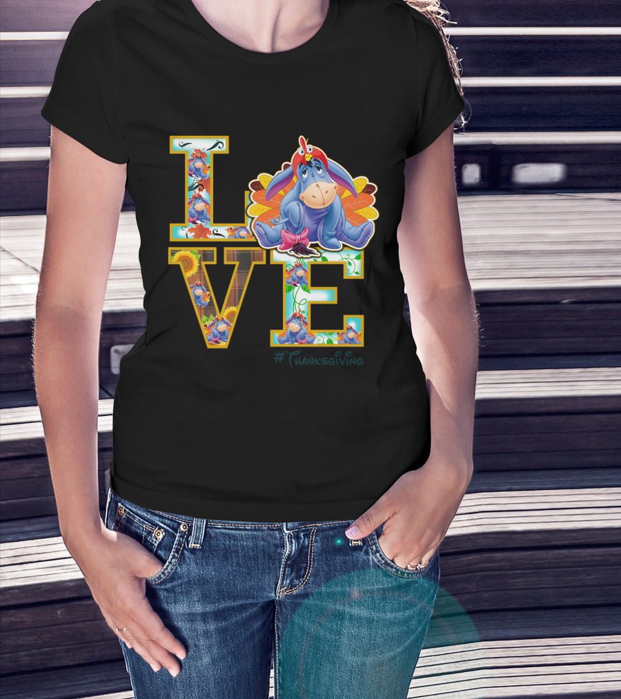 Eeyore Thanksgiving Love Autumn Leaves Sunflowers Turkey Hat T-Shirt