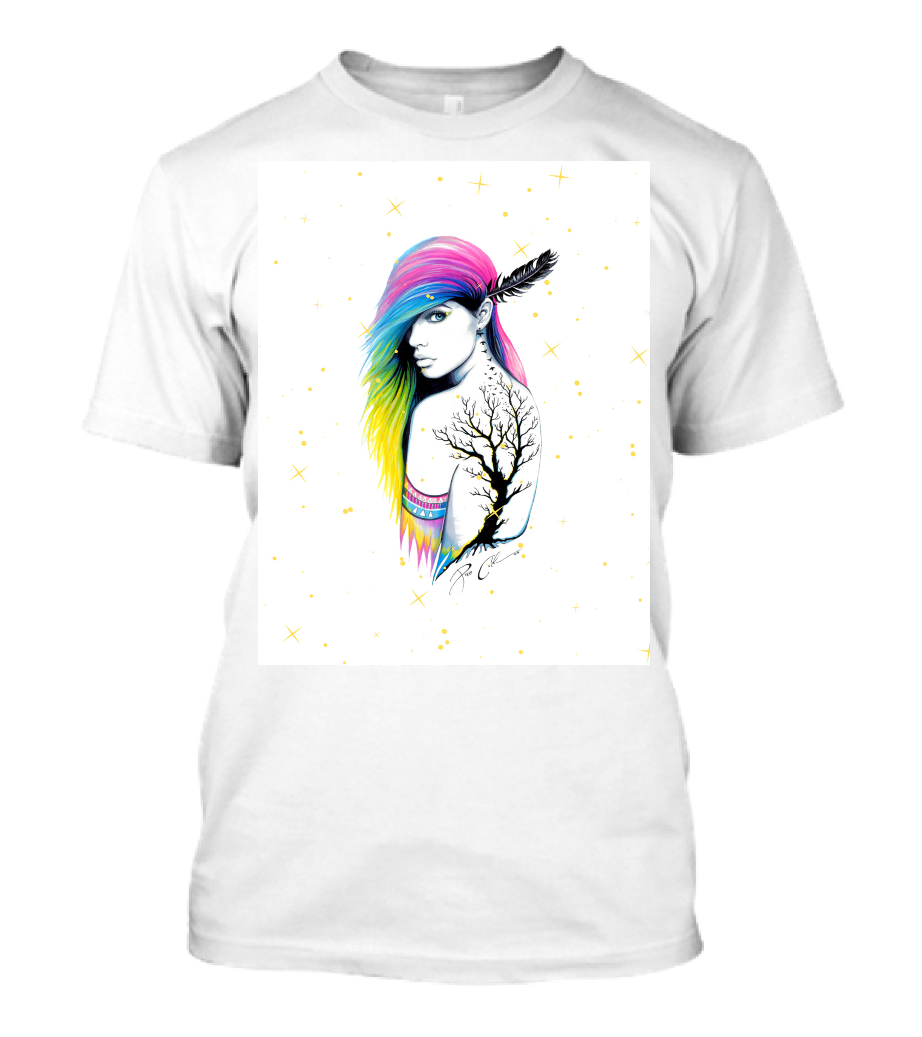 The The Painting Girl Feather Tattoo Neon Rainbow Hair by Fiddle Sticks网页 T-shirt is designed for everyday wear and a consistent fit. Fabric is pre-shrunk ring-spun cotton with durable stitching. See the size chart below for exact measurements.