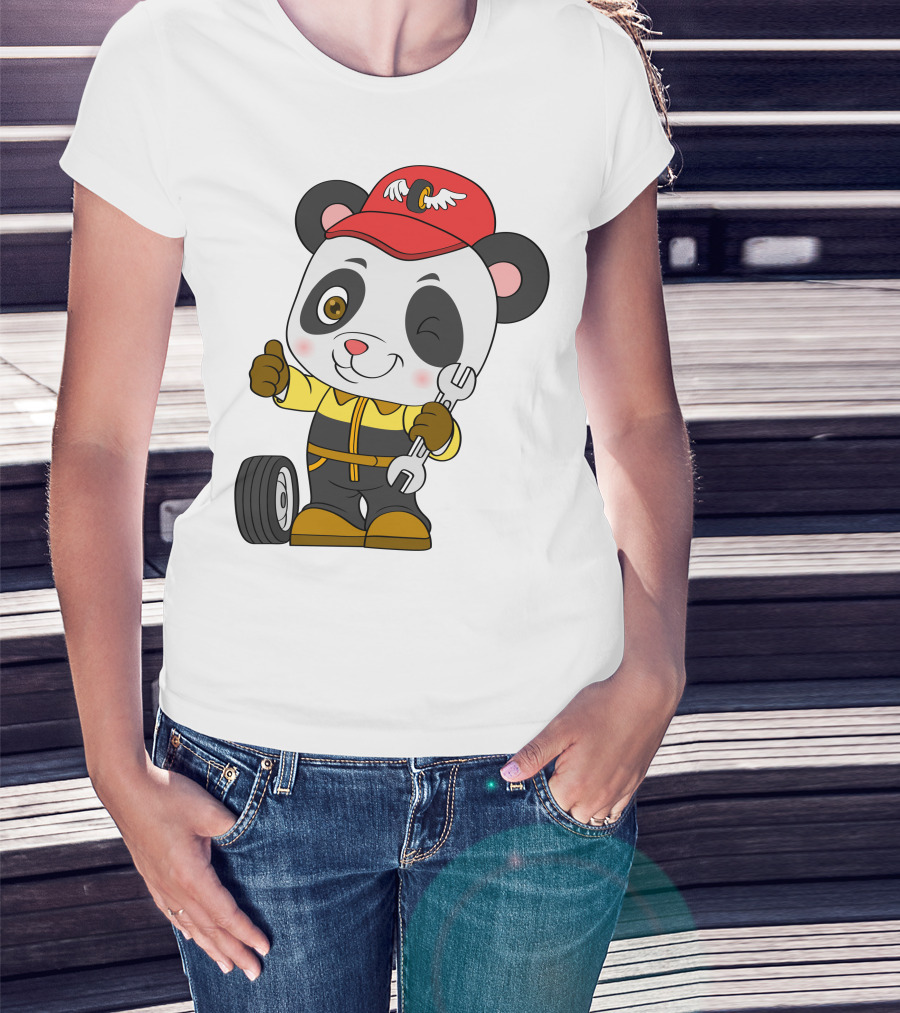 The Mechanic Panda Thumbs Up with Wrench and Tire T-shirt is designed for everyday wear and a consistent fit. Fabric is pre-shrunk ring-spun cotton with durable stitching. See the size chart below for exact measurements.