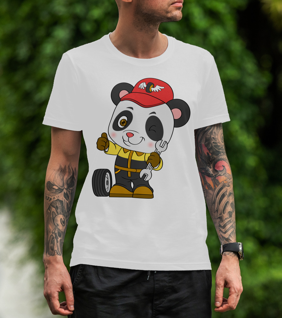 Mechanic Panda Thumbs Up With Wrench And Tire T-Shirt