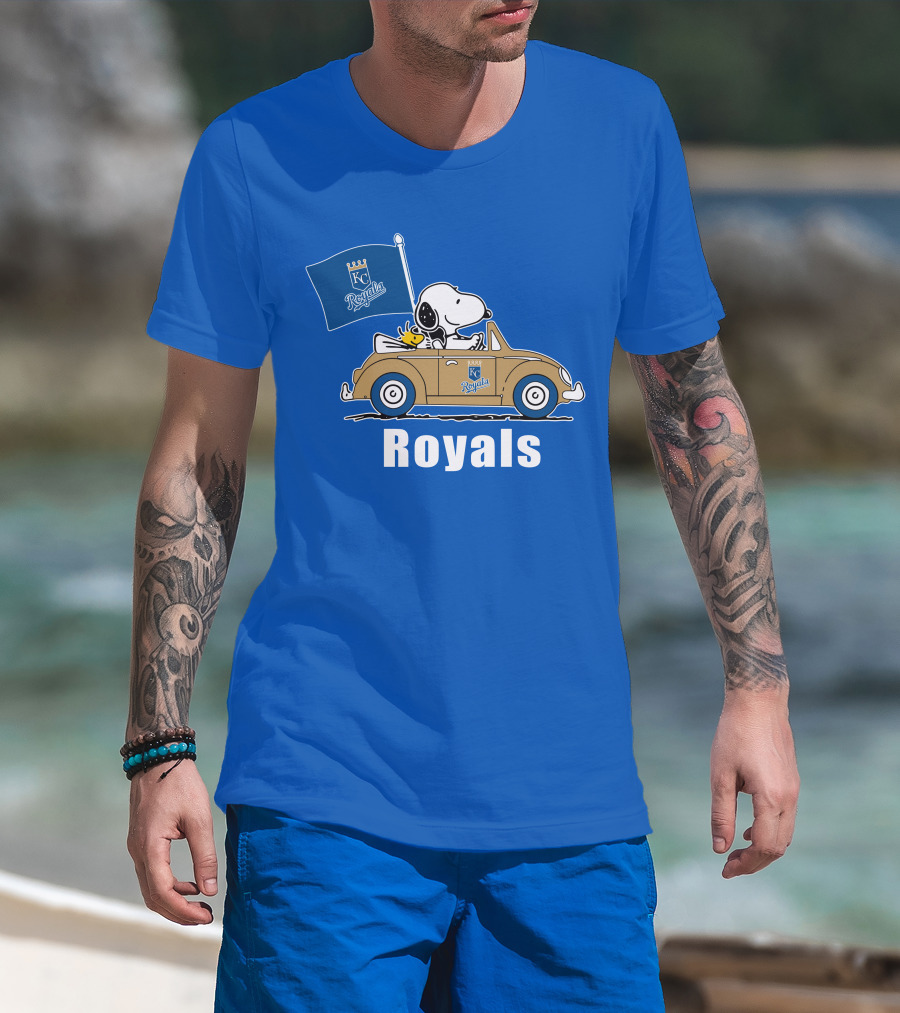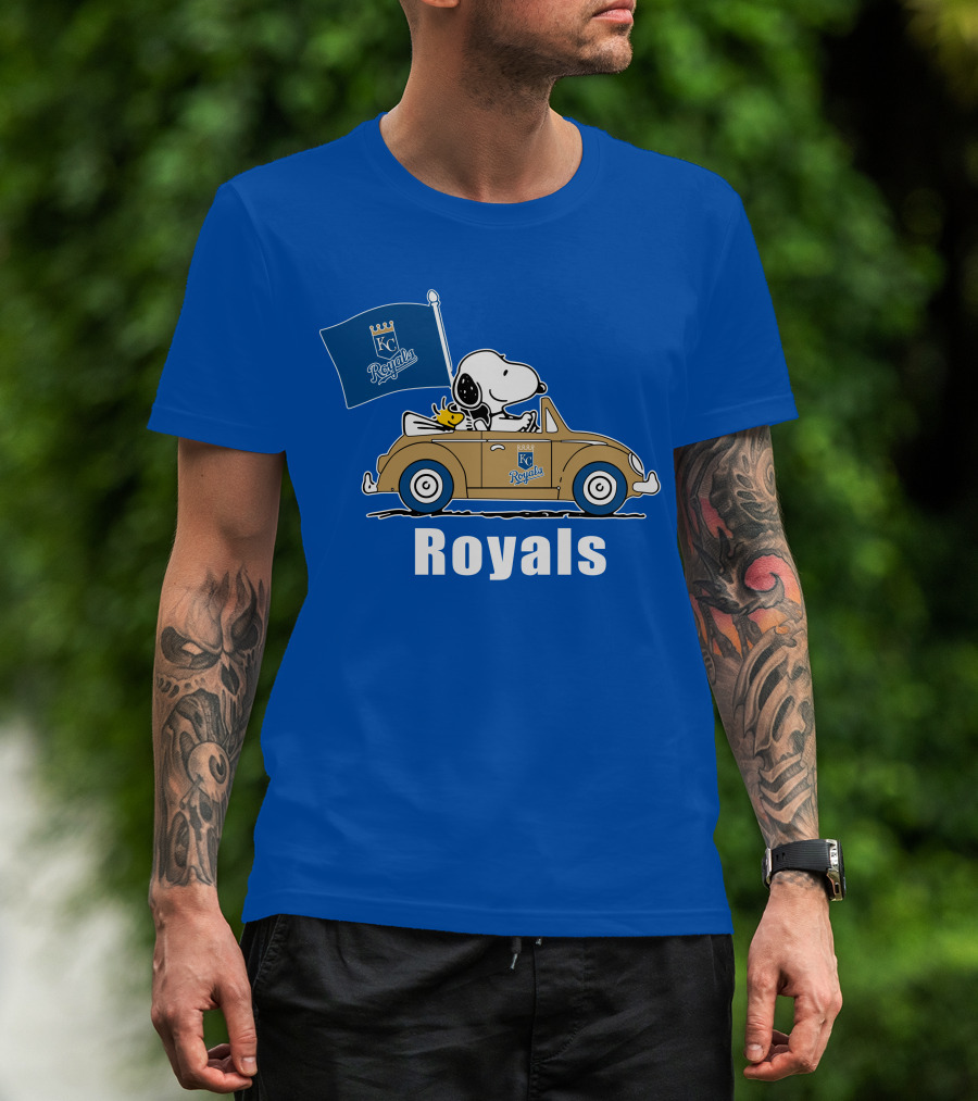 The Royals Snoopy KC Royals Flag Peanuts Car T-shirt is designed for everyday wear and a consistent fit. Fabric is pre-shrunk ring-spun cotton with durable stitching. See the size chart below for exact measurements.
