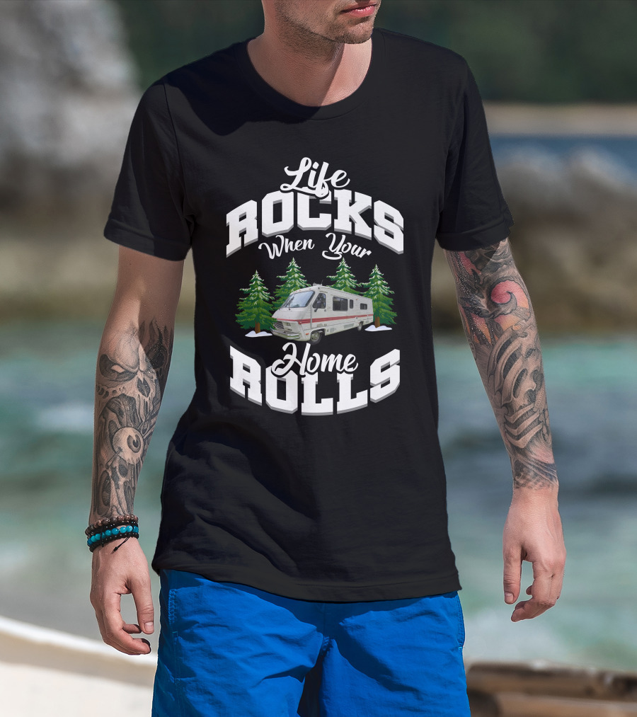 Life Rocks When Your Home Rolls Camper Vintage Fleetwood T-Shirt