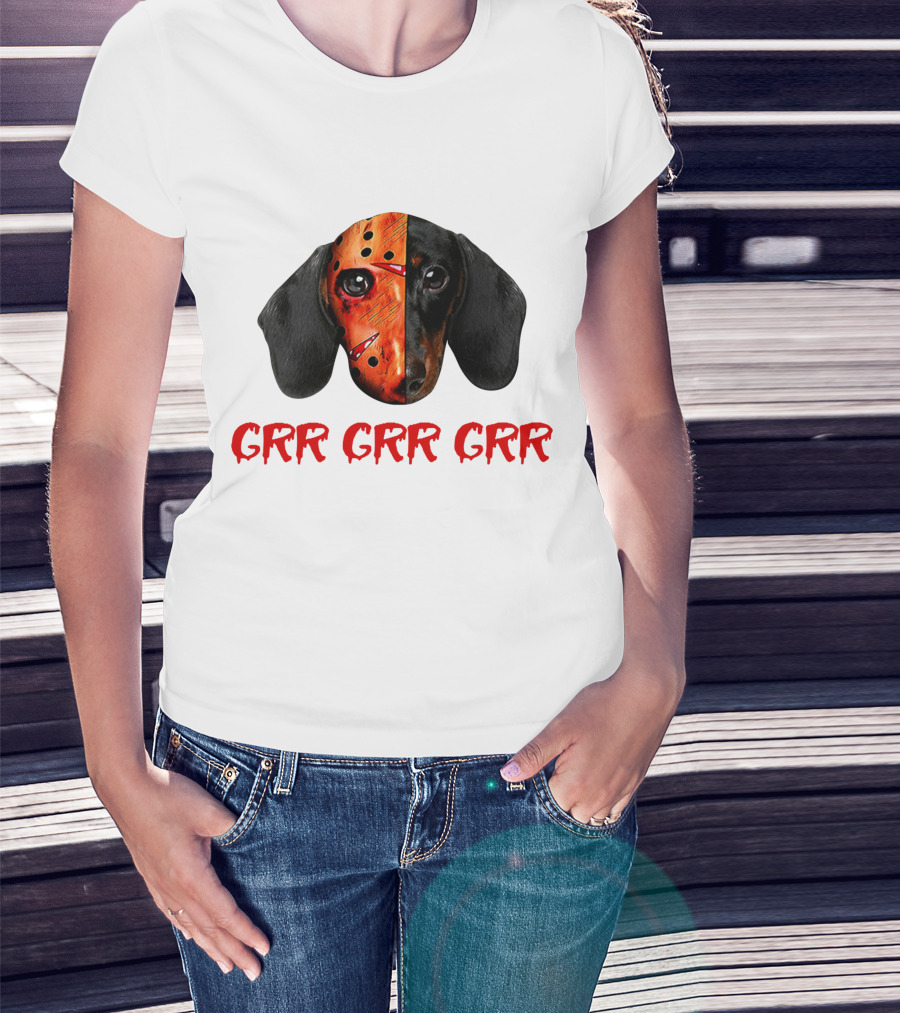 Ch Ch Ch Grr Grr Dachshund Jason Mask Mashup T-Shirt