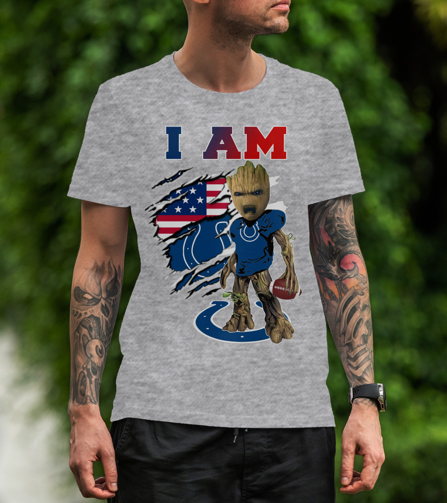 I Am Groot Colts NFL Football USA Flag T-Shirt