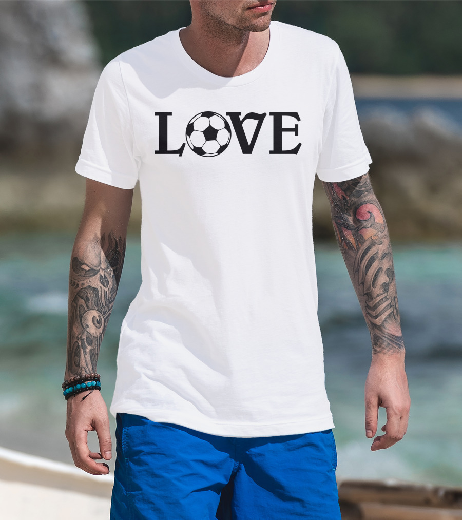 The LOVE Soccer Ball Typography T-shirt is designed for everyday wear and a consistent fit. Fabric is pre-shrunk ring-spun cotton with durable stitching. See the size chart below for exact measurements.