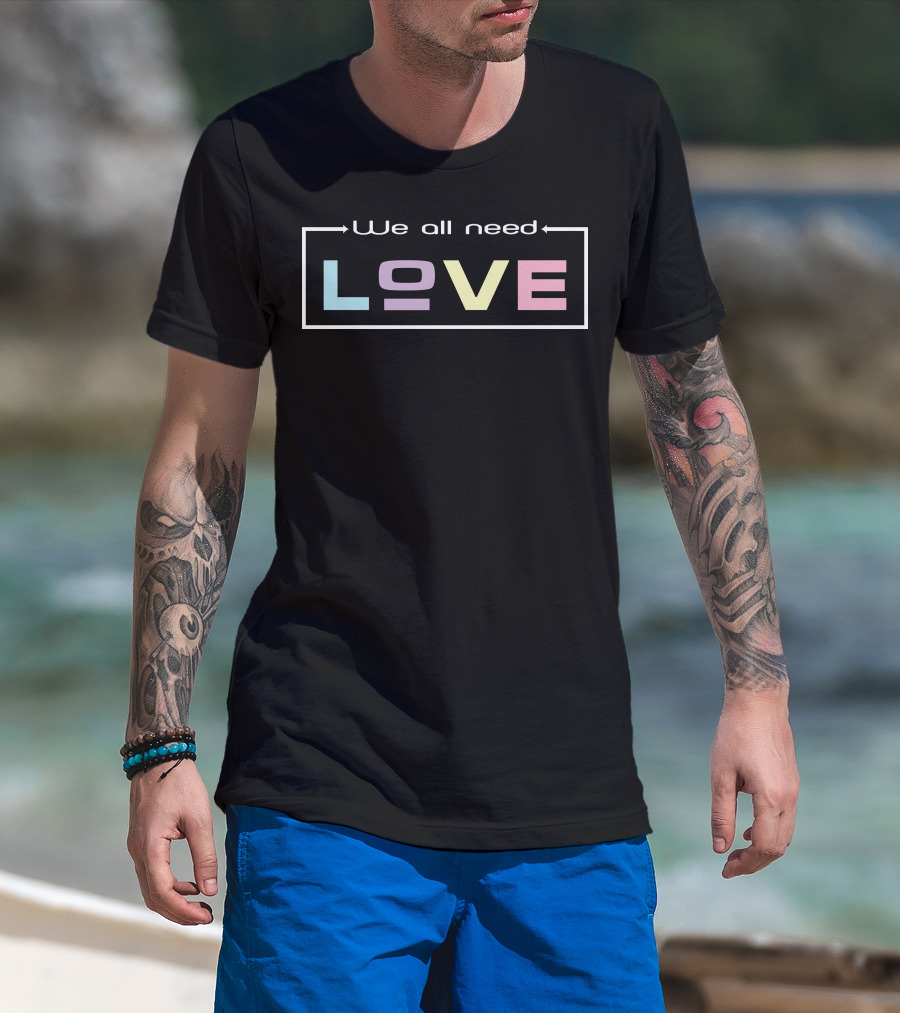 The We All Need Love Pastel Typography T-shirt is designed for everyday wear and a consistent fit. Fabric is pre-shrunk ring-spun cotton with durable stitching. See the size chart below for exact measurements.