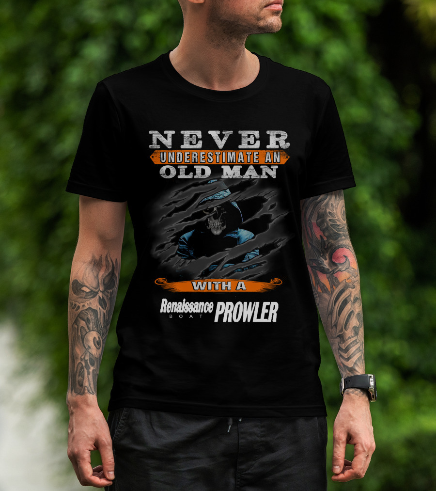 NEVER UNDERESTIMATE AN OLD MAN WITH A Renaissance BOAT PROWLER T-Shirt