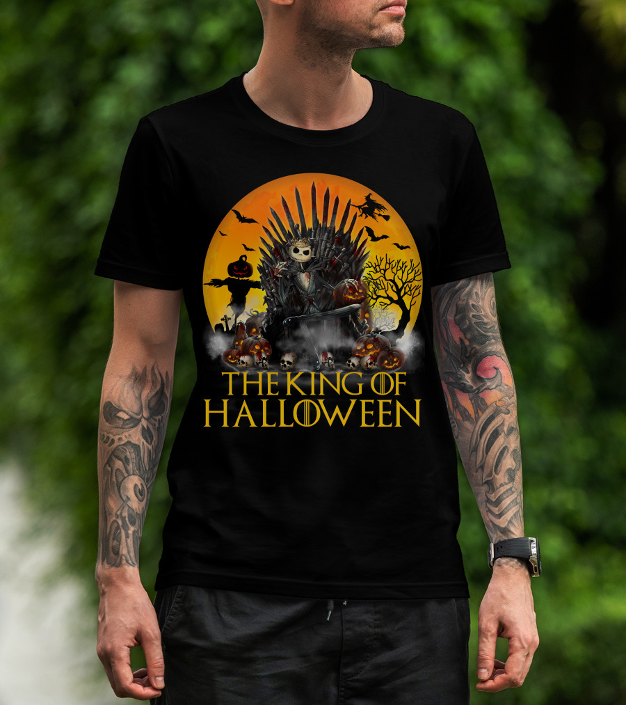 The King Of Halloween Jack Skellington Iron Throne Halloween Scene T-Shirt