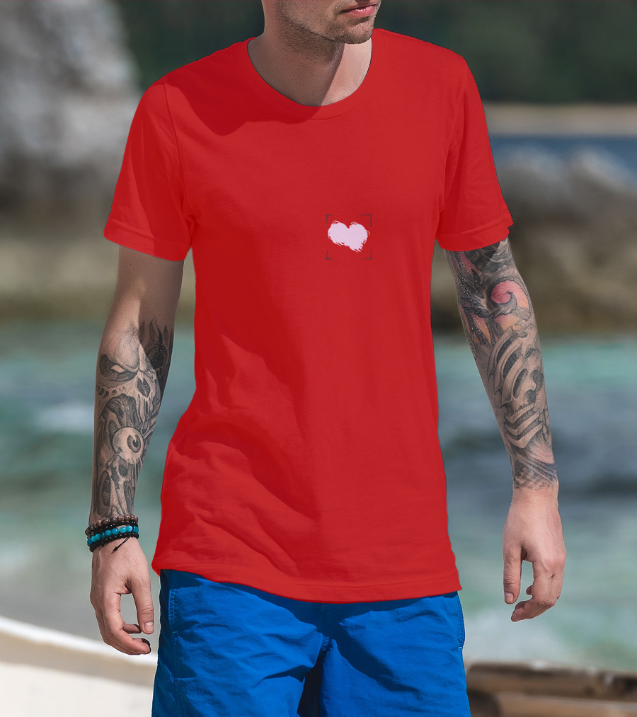 Heart With Framed Brushstroke Texture On Red T-Shirt