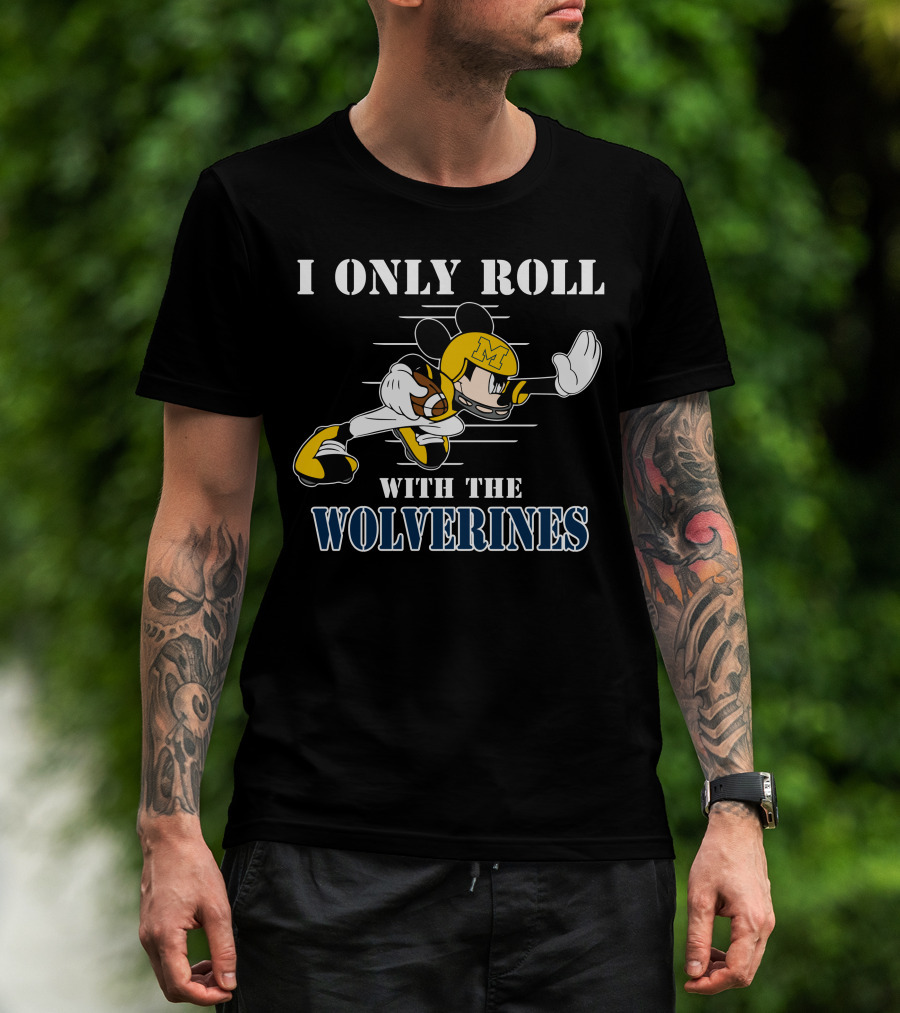 I Only Roll With The Wolverines Mickey Football Helmet T-Shirt