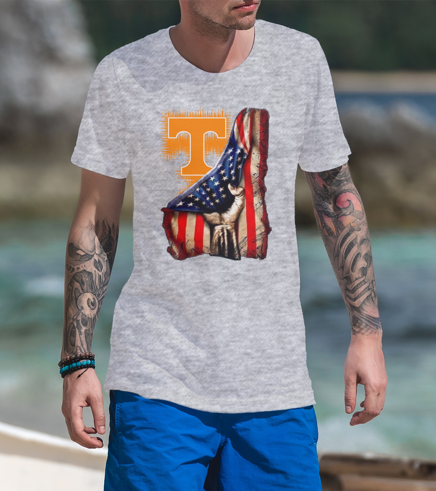 Tennessee Volunteers T Logo American Flag Fist T-Shirt